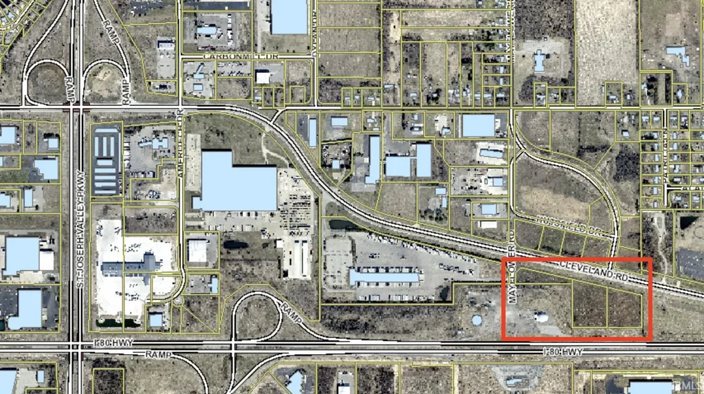 This 8+ Acre lot consisting of 3 parcels, stretches along the Indiana I-80/90 toll road for high visibility in a commercial and industrial area. With great accessibility to the US-31 Bypass, 80/90, and the South Bend Airport and just minutes from Indiana/Michigan state line you'll be close to it all. $155,000/acre. Call and inquire today! Broker Owned.