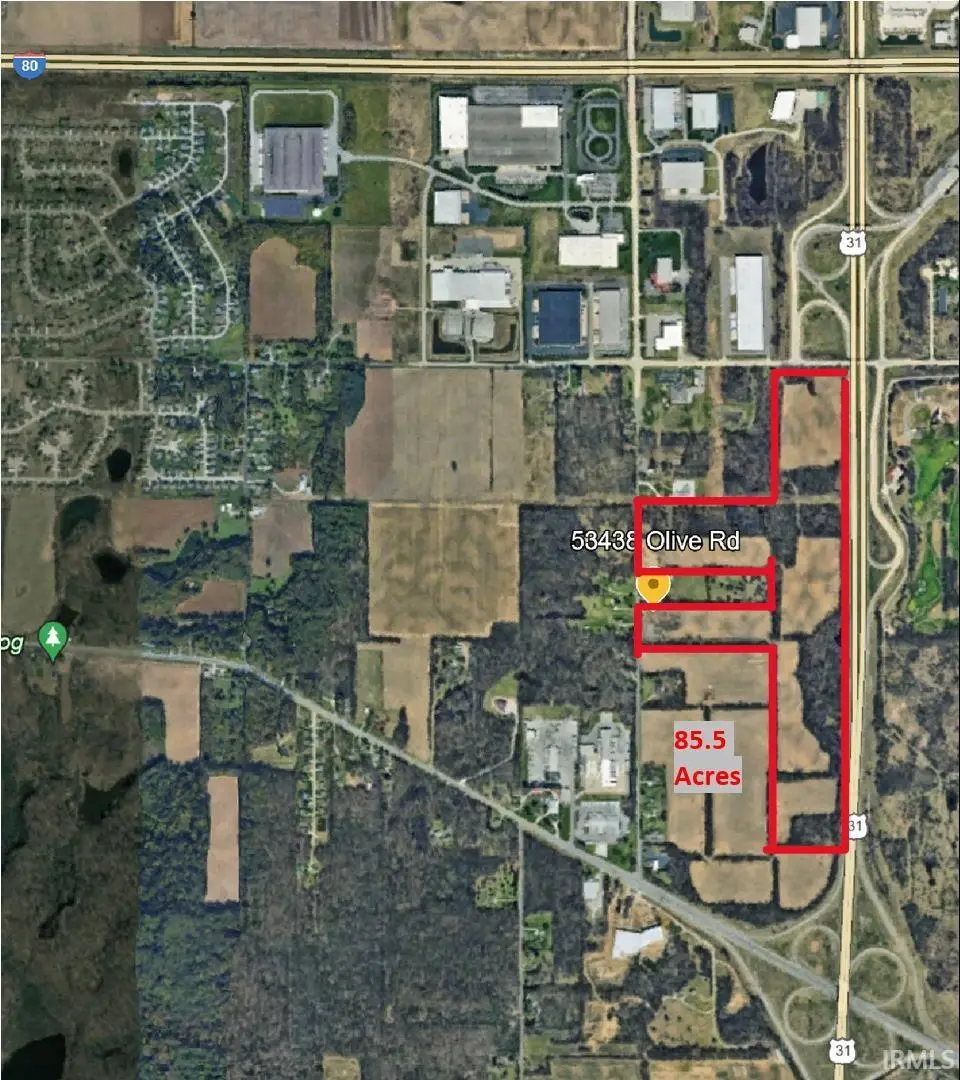 These 5 parcels being listed together total 85.5 acres in an incredible location! Great potential for a developer with incredible visibility along US-31 Bypass and just minutes to 80/90 Toll Road interchange, US 31 Bypass, Nimtz Parkway, the Michigan State line and South Bend International Airport. Seller will cooperate with rezoning to buyer's preferred use as this land is currently surrounded by light industrial and manufacturing. Burgeoning area of logistic based businesses. Water and sewer at road. Site is divisible. Seller can build to suit and lease back. Broker Owned.
