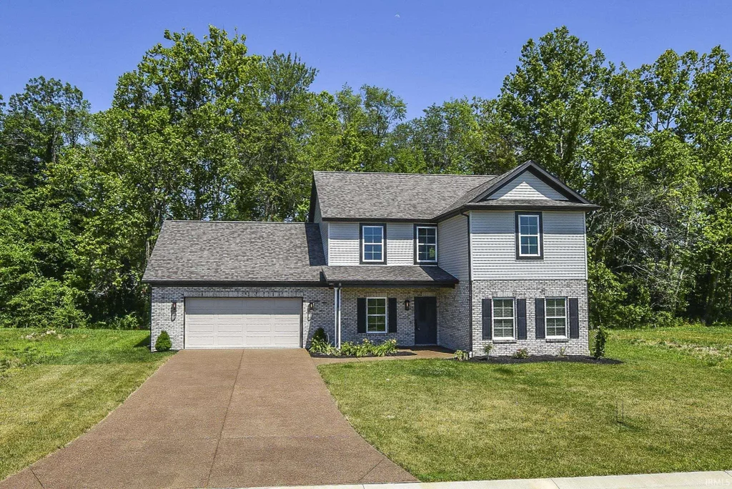 Nestled in the rolling hills of McCutchanville, Saddle Creek Estates is a new subdivision offering a picturesque setting and is strategically designed to be a secluded and quiet retreat from a busy world, and features large, wooded lots to host ideal homes. Lot 41 is the site of this newly constructed open concept, 4 bedroom, 2.5 bath two story home built with attention to detail and using quality finishes and true woodwork that lasts. "The Willow" floor plan is designed with a study located off the foyer entry, a main level owner’s suite, an open kitchen, dining, and living room area, a half bath, a walk-in pantry closet, and a large laundry room with a sink and plenty of counter and cabinet space. The kitchen is bright with white cabinets, and features a large island with breakfast bar, and stainless-steel appliances including the refrigerator. The owner’s suite has a walk-in shower, double vanity with two mirrors, a commode closet, and a spacious walk-in closet. A partially open staircase leads to 3 bedrooms with large closets, a hall bath with double vanity and tub/shower combo, and the bonus room. A wooded backdrop is the view from the great room and patio, and the surrounding wooded area makes for a peaceful setting. The yard has a convenient sprinkler system for keeping the grass green through dry spells. Discover Saddle Creek Estates, McCutchanville’s premier place to live!