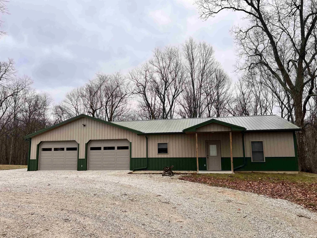 Live and breathe on your own 24 acre ranch with this pole barn home that comes with a 26 x 40 barn and pasture for horses and other animals. You will appreciate this owner's quality workmanship and fine materials throughout: 9' tongue and groove wood ceilings, stamped concrete floors, designer kitchen, tiled shower and knotty pine walls. Everything is like new in this warm and cozy 2 bedroom, open concept living space, extending to a covered back porch to take in the beautiful views! There is plenty of extra space in this two car garage for a work area/man cave w/an attached wood shed to maintain the wood stove. This property has endless possibilities: mini farm, hunting lodge, ATV trails or hiking. Whatever your hobbies might be there is plenty of room to wander...conveniently located close to an airport, French Lick entertainment and recreation at Patoka Lake. You will feel like you are home on the range!
