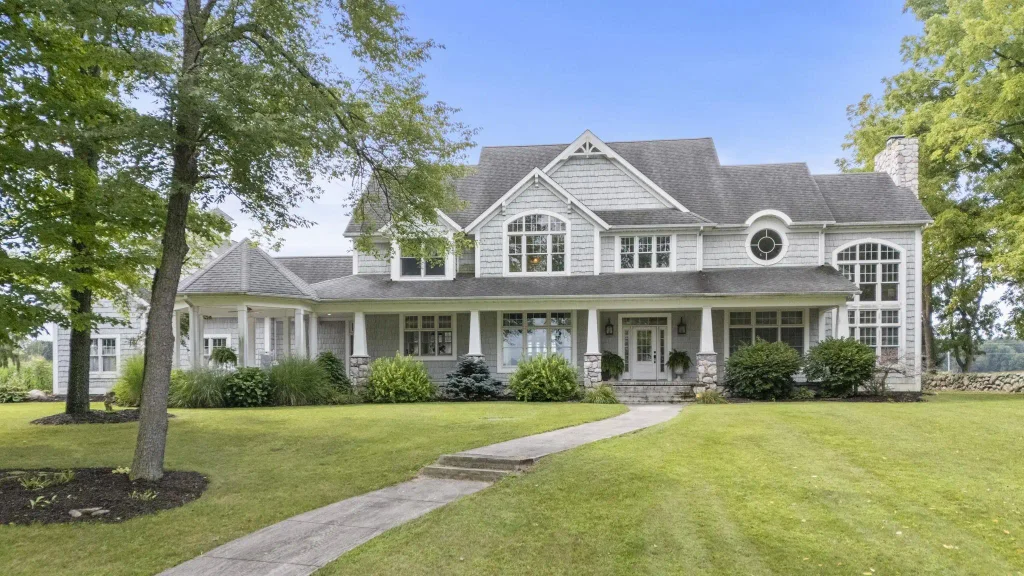 MOTIVATED SELLER! Situated on 1.75 ACRES with 108 FEET OF LAKE FRONTAGE on the south shoreline of WALL LAKE... this STUNNING LAKE FRONT 4+ BR HOME provides the Best of Both Worlds! Relax on the front porch to soak in the serene lake views or gather on the rear patio to enjoy a cookout in the privacy of your backyard. This custom-designed main home abounds with character and bright open spaces! Custom built by local craftsman with Amish-made woodwork, doors, and cabinetry, this lovely home offers nearly 7000 ft. of living space! Complete with 10 ft. ceilings the main floor features a cathedral ceiling Great Room with gas/wood stone fireplace, a formal dining room, and not one but two supplementary rooms which could serve as the ideal home office, library or playroom. A secluded hallway leads to the main floor primary ensuite with a vaulted tray ceiling and spacious spa bath. This home’s dream kitchen recreates a New England feel with floor to ceiling cabinetry, 6 burner Viking range with custom hood, quartz countertops, plate racks, bookshelves, a breakfast nook, and a 9x4 kitchen island perfect for gathering around! Rounding out the main level is a convenient lakeside porch entryway, half bath, laundry room, plus a stairway leading to the finished bonus room. The upper level offers a sizeable loft landing, 3 large bedrooms and 2 full baths including a convenient Jack-n-Jill style bath. Great care was taken to ensure beautiful lake views from nearly every room. There are numerous special touches throughout this home such as hardwood flooring, hand-crafted built-ins, and tucked-in window seats. The full basement is nearly finished and simply needs flooring to complete for the perfect recreation or media room. Lower-level plumbing is installed and ready for a bath. Energy efficient Geothermal HVAC with 2 furnaces. A home security system and built-in surround sound give peace of mind and ease of entertaining. An attached oversize garage with 9 ft. wide doors easily accommodates larger vehicles. A second detached garage gives space for additional storage inside and above, as well as a waterline ready to be hooked-up if needed. A LAKEFRONT 3 BR home is also available for $319,000. A perfect guest house or rental. See MLS# 202432851. A rare opportunity to own a home offering the peace of rural living while also enjoying the beauty of lake front views and the fun of lake life!