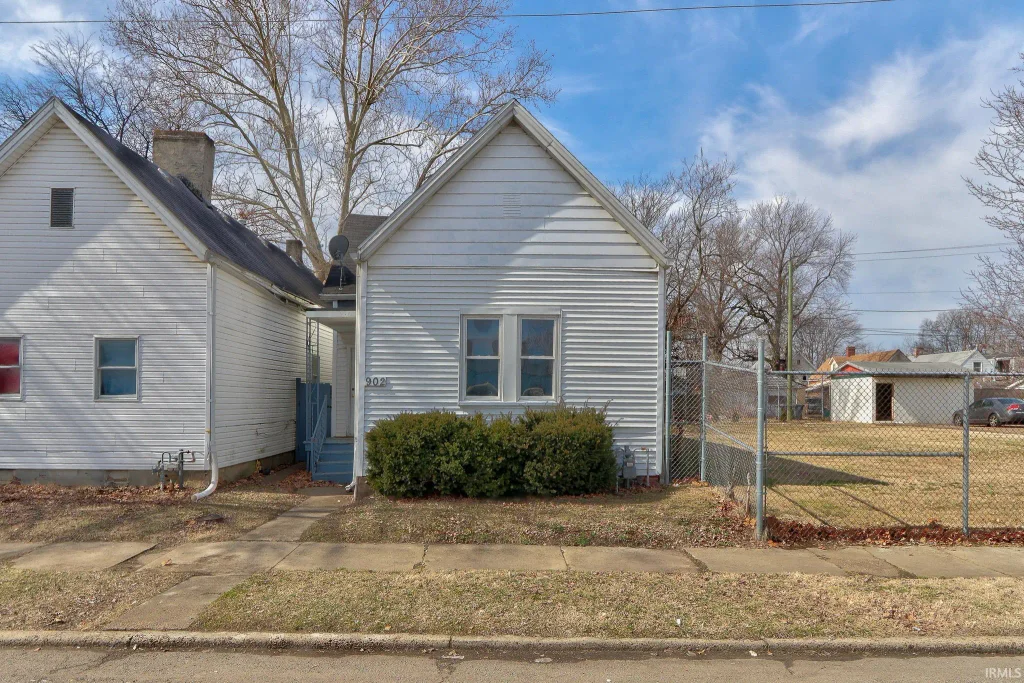 Welcome to this well-kept and move in ready one-story home, offering 2 bedrooms and 1 bathroom in a convenient central Evansville location. Step inside to find 9-foot ceilings that create an open, airy feel throughout along with neutral paint and color sections. The living room flows seamlessly into the eat-in kitchen, featuring a convenient island, laminate countertops, and laundry hookups. Two bedrooms feature carpet flooring and share the full bathroom with tub/shower combo. Outside, enjoy a fenced-in yard and a detached 2-car garage for extra storage or parking.