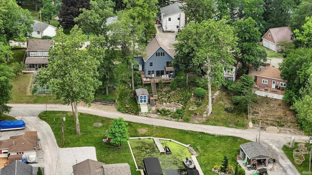 This property is located on the Barbee Chain of Lakes overlooking Irish Lake. This channel front home offers 4 bedrooms, 2 1/2 baths with over 2,100 finished square feet. Three of the bedrooms are located on the main level with great views of the lake. The spacious primary bedroom includes a private balcony. The primary bathroom has a custom walk-in tiled shower. The 4th bedroom is located on the upper level and could be used as a bunk room. Plenty of room to add more beds. Open concept floor plan between the living room, kitchen and dining room. The kitchen has soft close hickory cabinets with under lighting, a breakfast bar, a center island and all appliances stay. Step outside to the spacious deck and enjoy all the lake sounds. Another room is located outside on the side of the house and can be used for extra storage. A 10x12 shed and a fire Pit area is also located on the property.