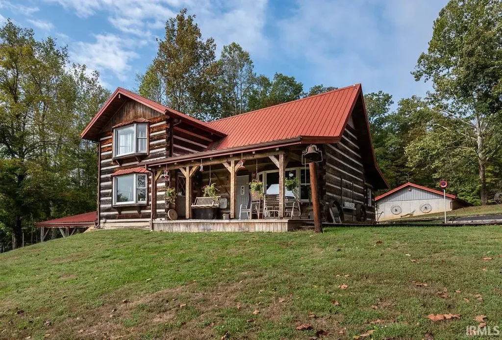 Live the Lake Monroe lifestyle in this beautiful custom log home on two parcels (2 acres) and a four car detached garage, plus additional outbuilding. Enjoy the direct adjacency to the nature preserve and bird sanctuary from this home that has direct adjacency to the lake conservancy. Enjoy fishing, kayaking and boating in this remarkable property near the lake Monroe Idol zone. This Amish built home with poured basement and walk out lower level. It has spectacular design and a relaxing porch with direct year-round views of the most beautiful section of Lake Monroe. Unwind just minutes from Indiana University and Bloomington in this pampered home with recent heat pump system, primary bedroom on the main, vaulted ceilings and exposed wood, rustic logs, metal roof system and additional room to grow in the lower level that’s perfect for recreation or is stubbed for a potential bath.