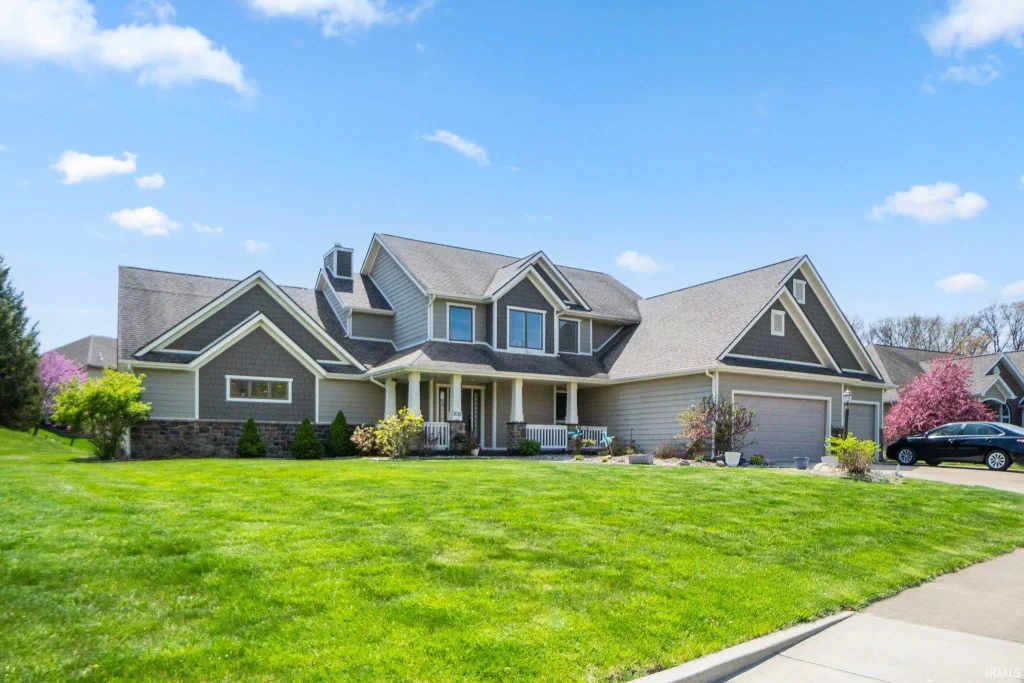 This thoughtfully designed 2-story home offers the perfect mix of luxury and livability—complete with a 3-car garage, covered back porch, and unique indoor amenities. Just 12 years old, the home features a 2-story foyer and great room with a gas fireplace and coffered-style ceiling for added character.The main-floor primary suite offers an en suite with dual vanities, a garden tub, tiled shower, and a spacious walk-in closet. The kitchen is a showstopper, with quartz countertops, island, breakfast bar, gas cooktop, double oven, walk-in pantry, and Grabill cabinets, plus a nearby mudroom with built-in lockers.Upstairs, two bedrooms each have their own full bath, along with a versatile open loft. The basement is built for entertaining, with a wet bar and your very own indoor basketball/volleyball court, plus a large unfinished space for future use.Enjoy quiet evenings or gatherings on the covered back porch in this one-of-a-kind home that blends comfort, function, and fun in one incredible package.