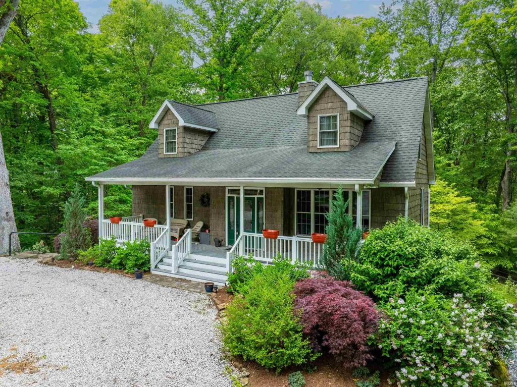 Check out the beautiful pictures of this charming secluded home, situated on a park-like setting with 3 mostly wooded acres, with gorgeous landscaping and mature trees, all of this while being just three minutes from Bloomington’s eastside shopping and restaurants, and just five minutes to Indiana University! Inside this lovely home you will find the master suite on the main level featuring a huge master bath with garden tub and separate custom ceramic tiled shower. The large screened in porch can be accessed from either the master bedroom or the French doors located in the dining area. Upper level provides two spacious bedrooms. The lower level offers a full finished walk-out basement with kitchenette and Murphy bed. Walking out of the lower level you'll find a large backyard with a huge TREX deck surrounded by thick mature trees. The detached garage and carport features a finished space above which is heated and cooled that would make a wonderful studio, the garage has separate electrical service, ready for EV charging. If you are looking for a home that provides a great deal of serenity while also being well designed for entertaining you must see this amazing home and property.