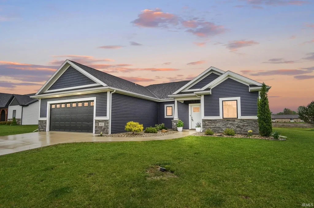 Welcome to your dream home in Butler, Indiana! This stunning 3-bedroom, 2-bathroom abode boasts high-end vinyl plank flooring throughout (carpet in the bedrooms), complemented by sleek quartz countertops and soft-close cabinets in the kitchen. Entertain guests effortlessly around the kitchen island, equipped with Samsung black stainless steel appliances. Relax by the cozy gas fireplace in the spacious living room, accentuated by tall ceilings for an airy ambiance. Retreat to the luxurious walk-in shower and unwind in the comfort of your own walk-in closet. With a spacious garage and modern amenities, this home offers both style and functionality. Finally, when the day is done and the western sun is painted in flashing glory, you can rest peacefully on your covered back porch overlooking the beautiful back yard. Don't miss the opportunity to make this exquisite property yours!