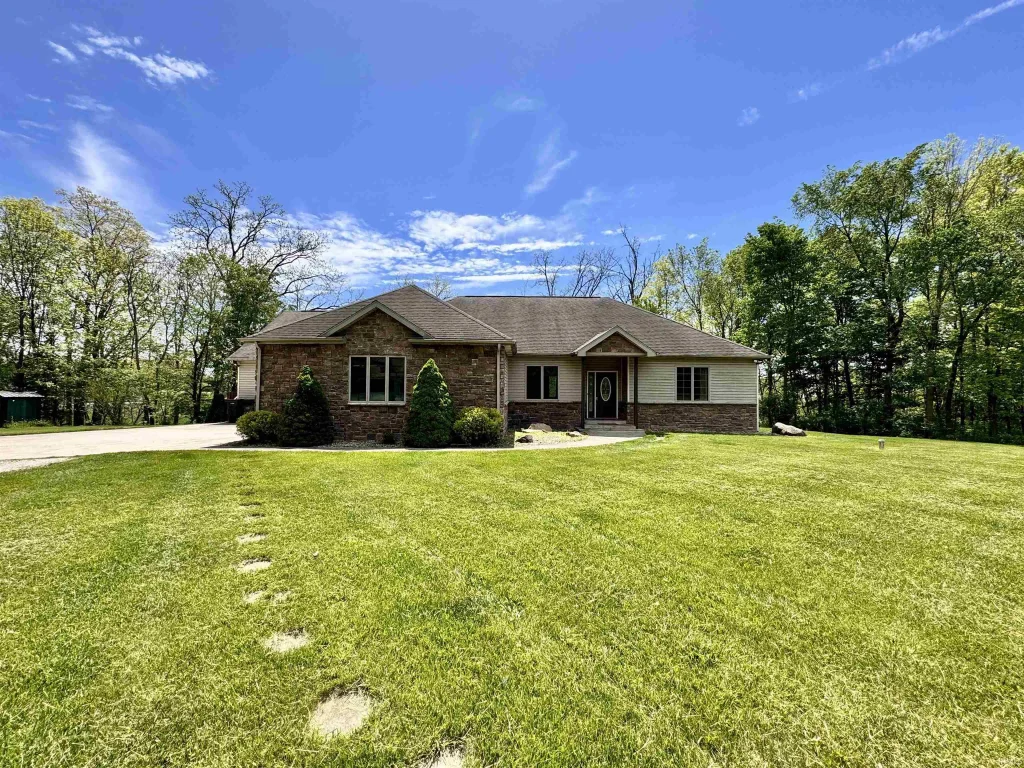 Tucked away in a rural setting, this 4,576 sq. ft. ranch-style home offers both comfort and versatility with a finished basement, ideal for multi-generational living or entertaining guests. The home features 5 bedrooms and 5 bathrooms, including a private in-law suite for added convenience and privacy. The lower level showcases a large living area and a full bar, creating the perfect atmosphere for gatherings or relaxed evenings. Outdoors, the property is equipped for both work and recreation. A 40’x64’x14’ pole barn shop includes two overhead doors and an additional room that could be used as an office space, ready for your business or hobbies. For equestrian enthusiasts, a 30’x40’x14’ horse barn with water and electric, includes two horse stalls plus an additional 22’x56’ lean-to, which provides ample room for livestock and equipment. The fenced pasture supports a range of agricultural or animal uses. Outdoor lovers will appreciate the wooded acreage and well-maintained trail system—ideal for hunting, horseback riding, ATV, or dirt bike trail riding. A private, secluded driveway enhances the property's privacy, while still offering quick access to I-69 for easy commutes to Auburn, Fort Wayne, and surrounding areas. This property offers a rare blend of rural tranquility, functional infrastructure, and recreational opportunities—all while outside city limits.