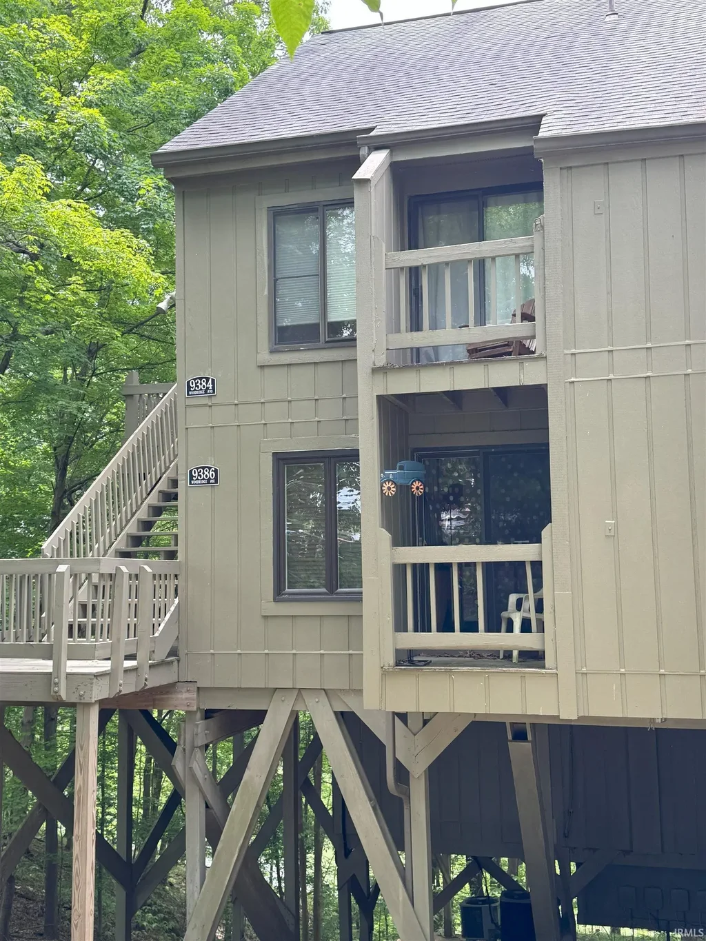 Your personal tree house! Seasonal view of a Lake Monroe inlet. Fabulous 2 bedroom/1 bath upper level, end unit in Woodridge at Eagle Pointe. The condo has a vaulted ceiling and spacious loft for guests, office, relaxing. Features include newer Pergo flooring and fresh paint. Woodridge offers a community pool and tennis. The Eagle Pointe 18-hole golf course is open to the public. The Eagle Pointe restaurant and clubhouse are also open to the public. The Seller is including 2 beds in the loft and the table in the loft. Live your best life at the Eagle Pointe resort!