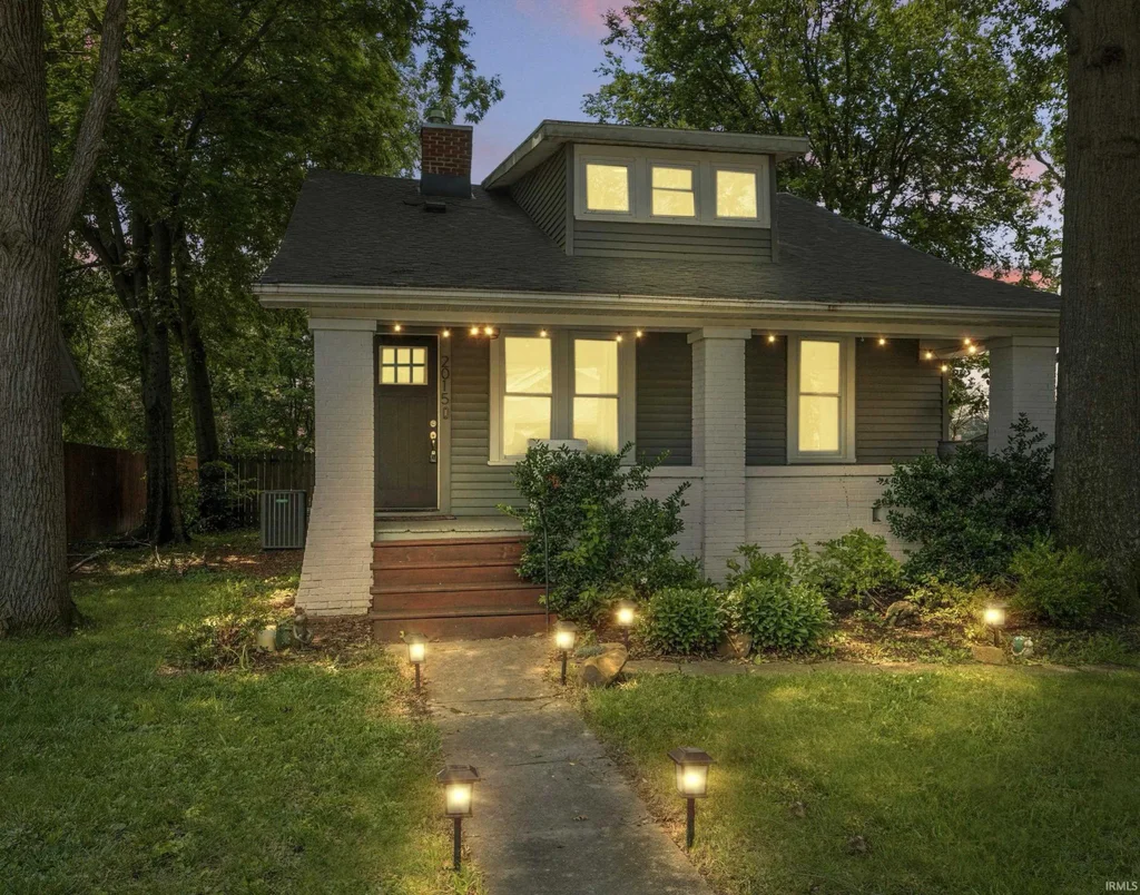 This thoughtfully renovated Craftsman home offers classic charm with modern design. Conveniently located between Alvord Boulevard and Weinbach Avenue—close to the University of Evansville and Honey Moon Coffee—this home is move-in ready and waiting to welcome you. Originally built in 1927, this bungalow was fully updated in 2021 with new flooring throughout, updated lighting, a new roof, new windows, new HVAC system, renovated bathrooms, and a completely remodeled kitchen featuring soft-close drawers and doors, quartz countertops, stainless steel appliances, a vaulted ceiling, and a butcher block breakfast bar. All three bedrooms and both bathrooms are located on the main floor for easy living. The upstairs is all bonus space, including a cozy office nook tucked into the front dormer. The backyard is perfect for entertaining, and the oversized one-car detached garage offers ideal space for both parking and storage.