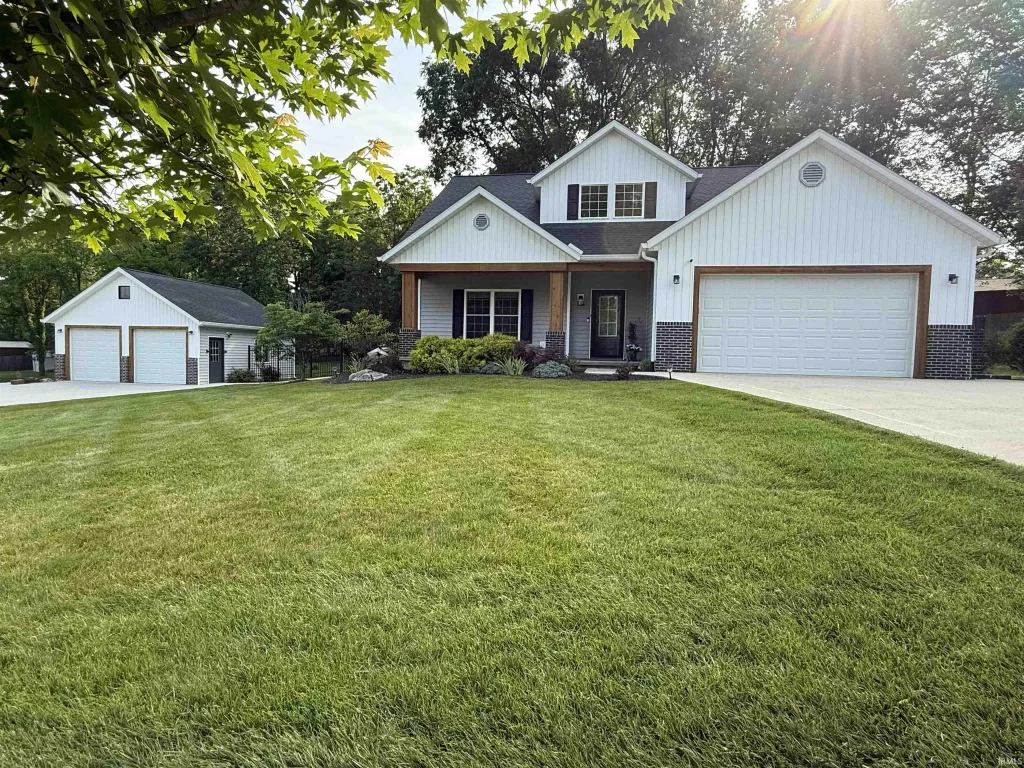 This immaculate and well-maintained three bedroom home is move-in ready! Entering the foyer, you'll find a lovely study before proceeding into the expansive great room with 18" ceilings and equipped kitchen with island perfect for entertaining and gatherings. The screened-in sunroom leads to the beautifully landscaped back yard with open deck and fire pit. Enjoy the extra yard space with over half acre and detached garage. The main level primary suite has a tiled shower, double vanity, barn door and walk-in closet. The decorative-spindled staircase leads up to a cat walk overlooking the great room and has split two bedrooms with a spacious full bath. Only minutes to Lake Monroe and I-69, this home is an easy commute to Downtown Bloomington, IU, Crane, and Bedford. NOTE: Attached Garage is a 2Car Garage and the Detached Garage is a 2Car Garage.