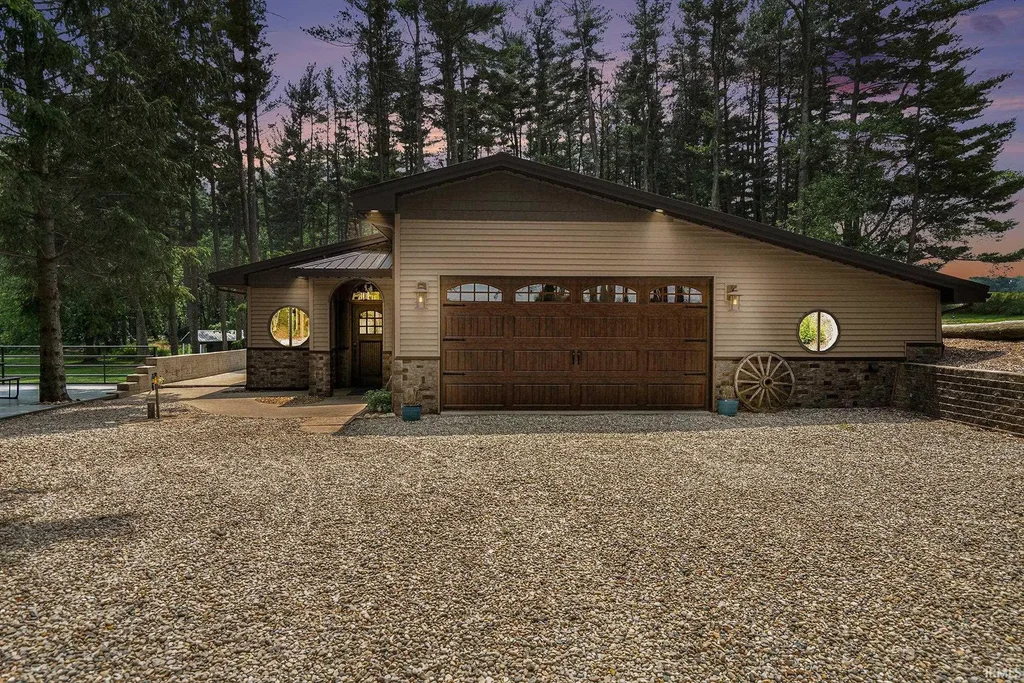 Welcome to this beautifully updated home on 10 acres overlooking a pond! The property includes a 24'x52' pole building, two decks, a walkout basement, a garden, and plenty of backyard space. The woods provide lots of deer hunting and wildlife watching opportunities. The uniquely custom home features custom tile and brick, detailed tile flooring, wood logs, custom rounded wood doors, round windows, beamed vaulted ceilings and more! The oversized two car garage includes a kitchenette and plenty of storage space. Enjoy peace of mind with the recently replaced metal roof, furnace and AC. Schedule your showing today!