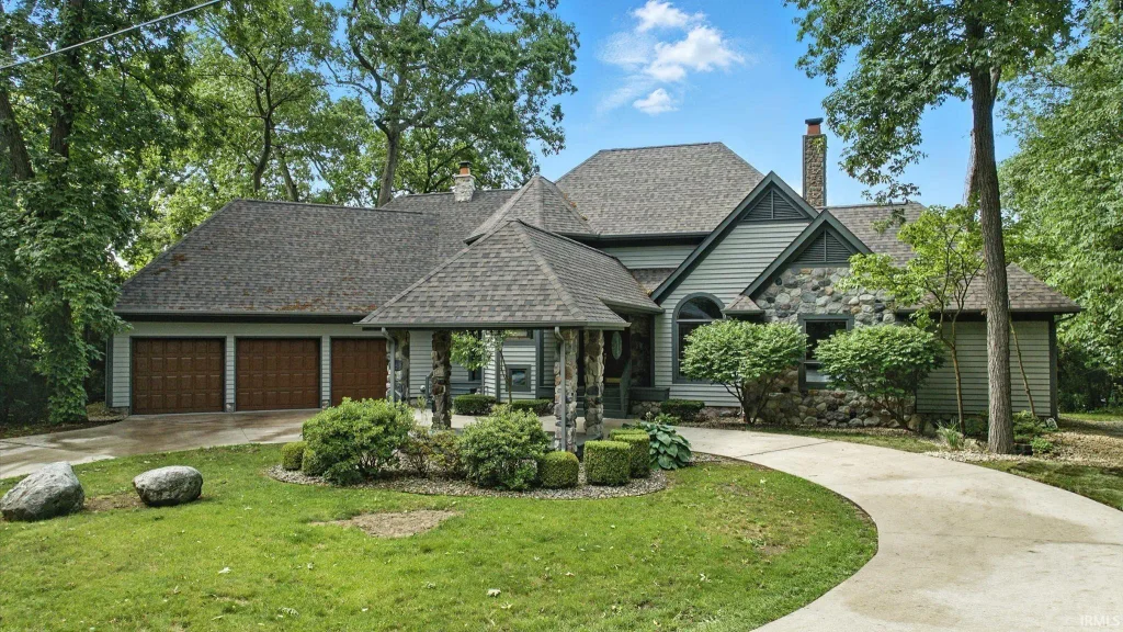 Luxury Living on the St. Joseph River! Welcome to this stunning 5-bedroom, 3.5-bathroom estate set on 1.29 acres with 139 feet of private river frontage. From the moment you arrive, the circular drive, porte-cochere and attached gazebo set the tone for refined elegance. Inside, the grand entryway with a striking staircase opens to a vaulted great room featuring a cozy fireplace and abundant natural light. Surrounded by lush, professionally landscaped grounds, this home offers a serene, secluded feel while delivering spectacular views of the St. Joseph River. Whether enjoying peaceful mornings on the patio or launching from your private boat house, every moment here is picture-perfect. The main-floor owner’s suite is a true retreat with a walk-in closet, spa-style bath, soaking tub, and stand-up shower. The gourmet kitchen is a chef’s dream with an nicely sized island, separate pantry, stainless steel appliances, and upscale finishes throughout. A dedicated office offers the ideal space to work or unwind. The finished walkout basement expands your living space with a large family room, two additional bedrooms with walk-in closets, a full bathroom, a flex room, and a second kitchen area with a beverage fridge and dishwasher—perfect for entertaining or multigenerational living. A spacious 3-car garage completes this exceptional property. Elegant, inviting, and built for both comfort and connection—this riverfront gem is ready to welcome you home.