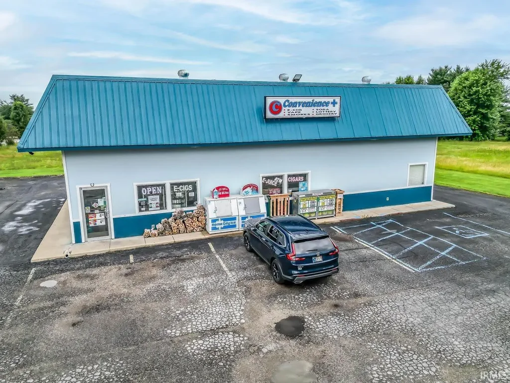 Solid steel Graber constructed building, well maintained, in excellent condition. Storage building behind. Abundance of floor space, office space, storage and parking. High visibility with traffic on Smith Pk. Great location for any sort of grocery, convenience store, or other retail. Currently, a convenience store with a 2-way liquor license, a tobacco license, and a humidity-controlled cigar room. Great signage and 2 access points for the parking lot. The open-span showroom is 48 x 21. The office is 10 x 13 and has a counter with a small sink. The kitchen is similar in size and has a range & refrigerator. The showroom has a 9' drop ceiling painted black and a 12' ceiling behind the front counter area with retail shelving behind the front counter. Inside the decorative surround at the top of the exterior, and the front facade of the building has had an EFIS finish added recently. Fixtures are included in the sale. See attached details of fixtures included in the sale and amenities, recent improvements, etc.