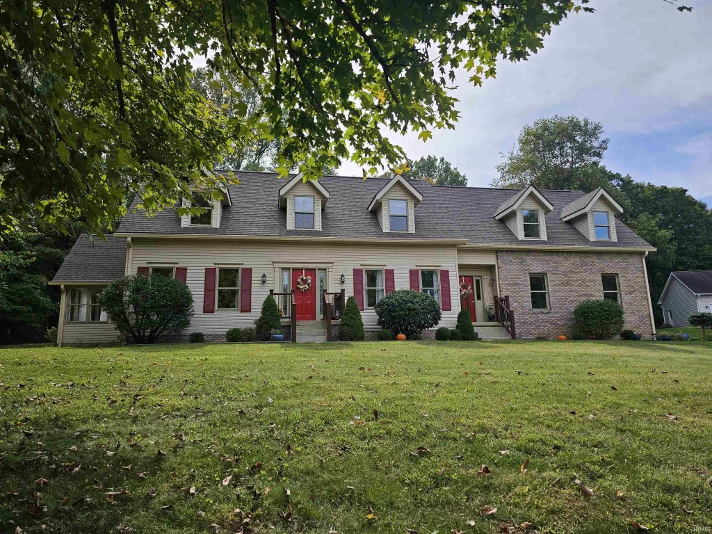 This beautifully maintained 4-bedroom, 3.5-bath Cape Cod home is nestled on a generously sized, wooded lot in the desirable MeadowWoods neighborhood. Enjoy the charm and privacy of nature right outside your door. A standout feature is the separate living area above the large 3 car garage—complete with its own private entrance. Ideal for guests, extended family, or rental opportunities, this flexible space can serve as an in-law suite, studio, or Airbnb. It includes a living room with new carpet, kitchen with new counter tops, bedroom-new paint, and even its own laundry area. The main home boasts a cozy gas fireplace in the family room and a bright sunroom with skylights and direct access to the expansive back deck—perfect for relaxing or entertaining. The kitchen features stainless steel appliances, a center island with built-in cooktop and shelving, plus a breakfast bar and dining nook that overlooks the deck and backyard. The master suite offers two walk-in closets (his and hers) and a recently updated bathroom with a soaking tub and walk-in shower. Bedrooms 2 and 3 share a convenient Jack-and-Jill bathroom, making it perfect for families or guests. Enjoy the convenience of a main-level laundry room, in addition to the second laundry space in the in-law suite. The unfinished basement has poured concrete walls and flooring with copper pipes. Home has had recent updates-new paint on front doors & shutters-new exterior lighting. Recent HVAC cleaning! Sellers are offering a home warranty up to $650.00.