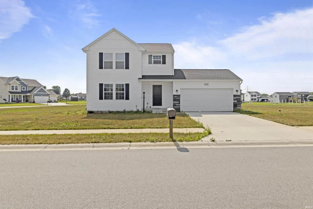 Modern Colonial Charm in Deerfield Estates – Built in 2023 Step into this beautifully crafted 2-story colonial home located in the desirable Deerfield Estates community. Designed with modern living in mind, this energy-efficient residence offers thoughtful upgrades throughout, including a 50-gallon water heater, a 1 HP upgraded well pump, and a 200 AMP electrical service. Enjoy the convenience of an attached 2-car garage with remote and keypad entry, plus a spacious 14x14 patio—perfect for entertaining or relaxing outdoors. The heart of the home is the designer kitchen, featuring elegant quartz countertops (including a breakfast bar) and a GE gas appliance suite: range, dishwasher, and microhood. The main and upper levels are finished with stylish, low-maintenance vinyl flooring, while the fully finished basement includes a large rec room and is already roughed-in for a future bathroom—ideal for expanding your living space. A charming covered front porch welcomes you home and adds timeless curb appeal to this nearly new build. This home is move-in ready and built to impress—don’t miss your chance to call it yours!