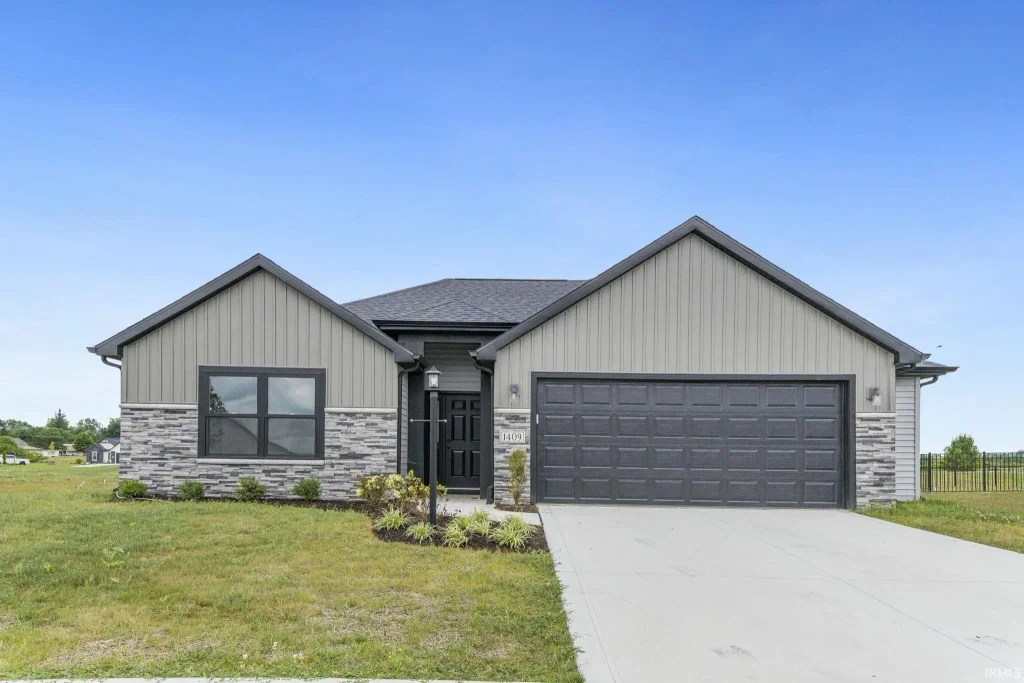 This 3BD, 2BA home built by Heller Homes is move-in ready and thoughtfully designed. This charming ranch home features a spacious open floor plan with split bedrooms for added privacy. A wall of windows in the family room provides great natural lighting and great view of the sunsets. The kitchen offers ample counter space, a generous pantry, and plenty of room for entertaining. A well-sized laundry room and a 2-car garage with a bump-out provide additional storage. This low-maintenance home is ideally located near the Pufferbelly Trail and State Road 3, offering both comfort and accessibility.