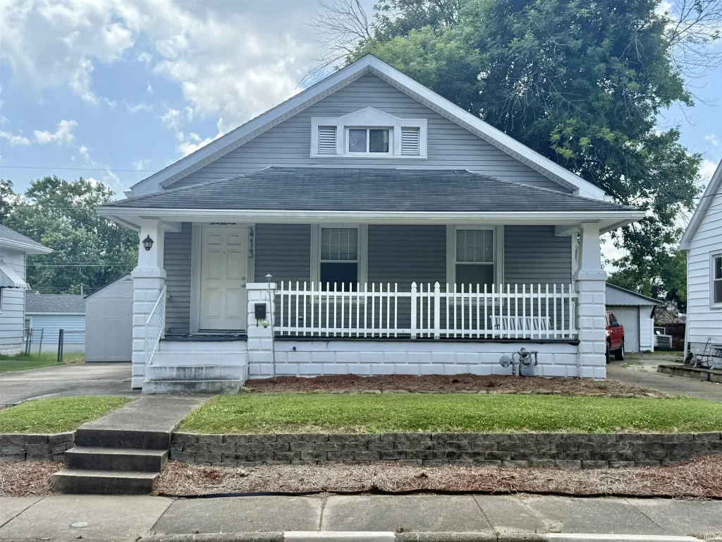 Welcome to 413 E Olmstead! This charming and spacious 2-bedroom, 1-bathroom home offers comfortable living with bonus space for added flexibility. The main level features 884 square feet of finished space, while the partially finished basement adds another 442 square feet, including a rec room that’s perfect for quiet entertainment, hobbies, or a safe retreat during storms. This extra space offers versatility rarely found at this price point. The home also features wood flooring in the front room, a tiled kitchen floor, carpeted bedrooms, and ceiling fans throughout. The kitchen includes a pantry for added storage, and the full bathroom offers a tub/shower combo. One of the standout features of this home is the covered front porch, undoubtedly a welcoming space perfect for sipping your morning coffee or relaxing in the evening. Outside, you’ll enjoy a generously sized backyard, a 12x12 detached garage, a private driveway, and a spacious storage shed for all your outdoor storage needs. Thoughtfully designed and full of charm, this home offers both comfort and functionality in a peaceful setting.