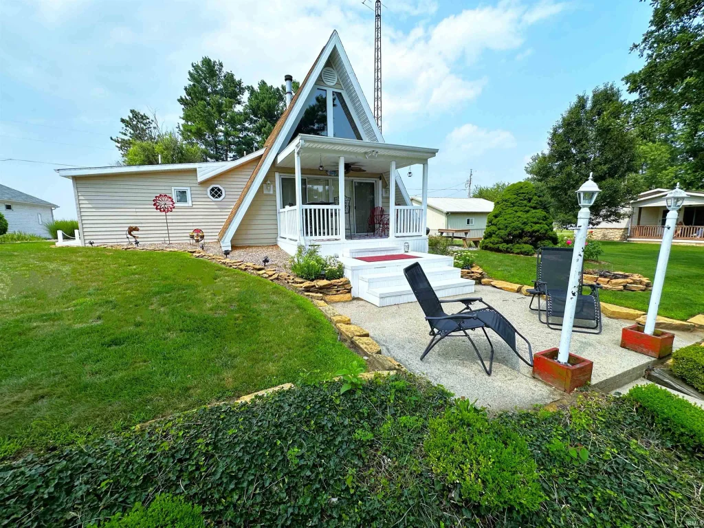 This charming A-frame offers plenty of pluses, perched on a level, low-bank lot with 75’ of waterfront, a covered permanent boat & double jet skis lift, & a covered vinyl lake-view deck off of the house. Inside you’ll experience the light & bright/spacious feel provided by the cathedral-like design, where you will find the main living room w/fireplace, upper bedroom, and a loft. Main floor bedroom includes a 1/2 bath, additional all-purpose room w/laundry, & a private entrance. A nice-sized kitchen, full bathroom, & mechanical/storage room complete the main level. Well maintained, cozy interior, picturesque lot, this waterfront getaway gets an A+ for enjoying the lake life!