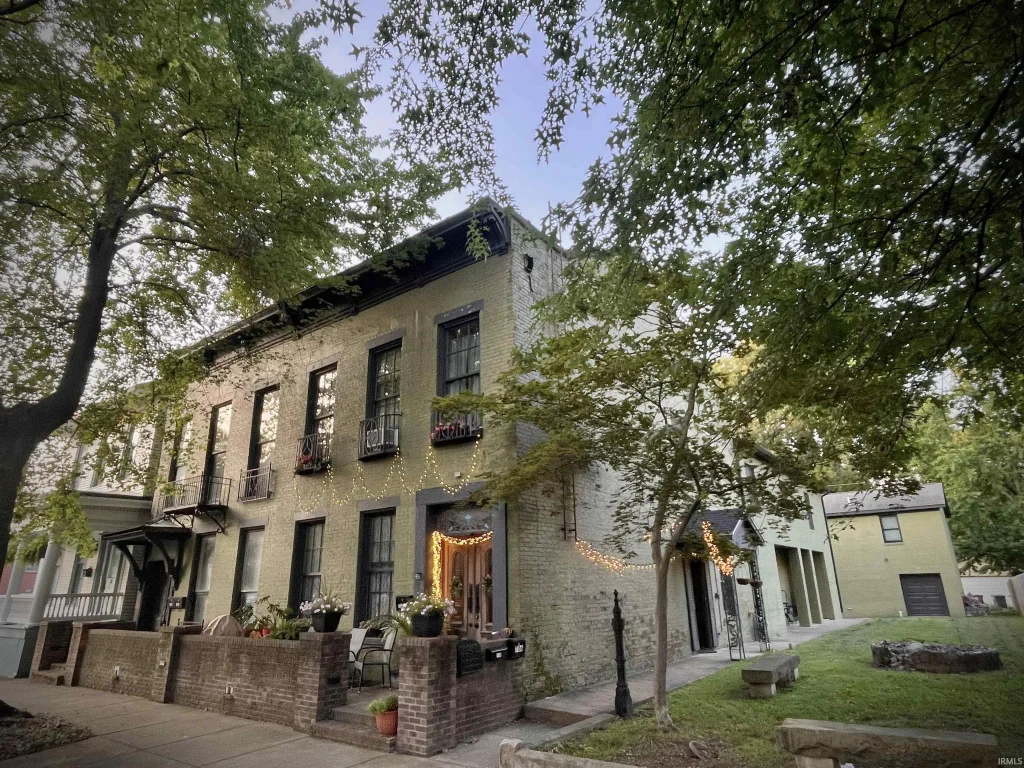 In the heart of Evansville’s Haynie’s Corner Arts District, between the riverfront and downtown, this beautifully updated Italianate property blends mid-19th-century character with modern investment appeal. Originally built circa 1850, it now offers four luxury apartments plus a spacious one-bedroom carriage house apartment above an oversized two-car garage. Together, these units generate approximately $68,000 in annual gross rent. The right-side owners’ unit underwent a complete renovation and brick addition circa 2010, featuring quality finishes & tile, wood & hard surface flooring, and luxury details that shine today. A new roof was installed in 2025. The left side of the duplex presents a rare opportunity for transformation—ideal for a large two or three bedroom townhome conversion or additional rental space. All of this is just steps from neighborhood festivals, local dining, and the medical school campus. Properties with this combination of historic curb appeal, updated systems, income potential, and prime location are rare in Evansville’s core. Showings by accepted offer only, to respect tenant privacy, it’s time to grow your portfolio today.