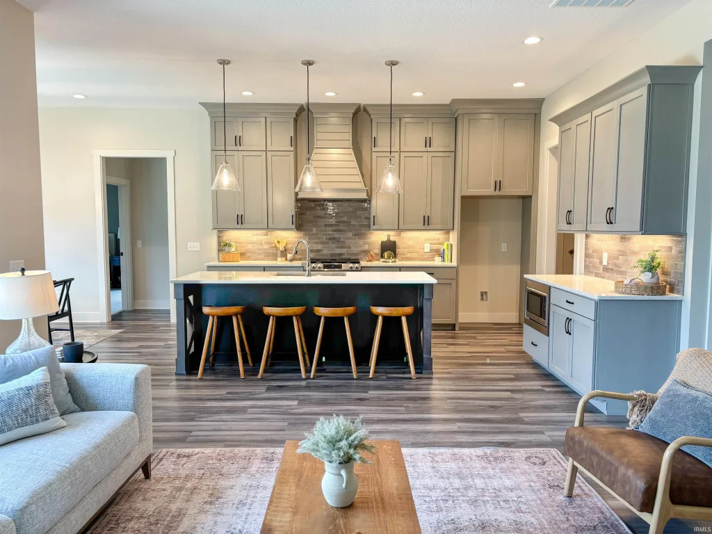Stunning new home in NWAC Schools – Custom Finishes, Pond View & Family-Ready Spaces! This beautifully crafted 4 BR, 3.5 BA home offers 2,686 sq ft of thoughtfully designed living space, perfect for modern family life. Step inside to discover high-end custom finishes, including detailed trim work, cozy gas FP & an open-concept layout. The flexible den/office w/charming corner barn doors adds versatility—perfect for remote work, playroom or a quiet retreat. Upstairs you'll find a 4th BR or bonus room & full bath, providing extra space for guests, teens, or second living area. Enjoy outdoor living at its best with a screened porch & finished patio overlooking a tranquil pond view—perfect for relaxing evenings, family BBQs or playtime. The 3-car garage offers ample space for vehicles, bikes & all your outdoor gear. Fresh, professionally designed landscaping enhances curb appeal & sets the tone for the welcoming charm found throughout the home. Just minutes from the Pufferbelly Trail & all the amenities of NW Fort Wayne, this home offers a blend of style, space, and a family-friendly location.