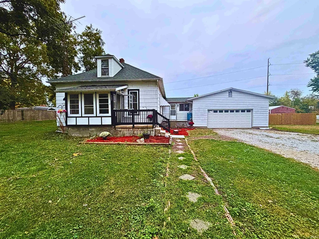 Charming Traditional home on a spacious corner lot, tucked in a quiet small-town setting with many great features. Such as original well-kept hardwood floors, nearly 2,000 sq ft with 3 generous bedrooms, 1 full bathroom, and a bonus space that connects off the laundry room for a 4th bedroom, office or hobby room. The large custom-built kitchen created from reclaimed railroad wood offers a warm rustic atmosphere with generous counter and cabinet space. It's perfect for everyday cooking or entertaining. The third bedroom is a unique open loft style, located upstairs with access to attic storage. Outside enjoy a fully fenced backyard with a brand-new patio, perfect for relaxing or hosting. There is an attached 2 car garage with a storm shelter built in. Just minutes from shopping, Purdue University and within Benton County School District.