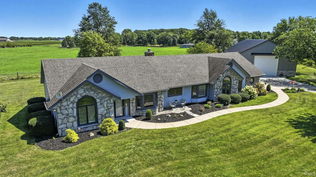 *OPEN HOUSE Sunday October 19th from 1:00 pm - 3:00 pm* Welcome to 8228 Bull Rapids Road, a serene country retreat on over 2 acres that perfectly blends comfort, functionality, and space inside and out. This one-story home offers 3 bedrooms, 2.5 baths, and multiple living areas, including a vaulted great room with a cozy stone fireplace, a remodeled kitchen with custom cabinetry, stainless appliances, and island seating, and a bright sunroom with walls of windows overlooking the countryside. The primary suite is a true retreat with dual vanities, a soaking tub framed by picturesque views, and a walk-in closet, while two additional bedrooms provide flexibility for family, guests, or office use. A laundry room with sink and cabinetry adds convenience, while the attached 3-car garage provides workbenches, a utility sink, drains, and abundant storage. The expansive outbuilding offers RV parking, overhead doors, workshop areas, loft storage, and even a half bath. Outside, mature trees, landscaped grounds, and multiple patios create the perfect setting for relaxation or entertaining—all just minutes from Woodburn, New Haven, and Fort Wayne. Schedule your showing today!