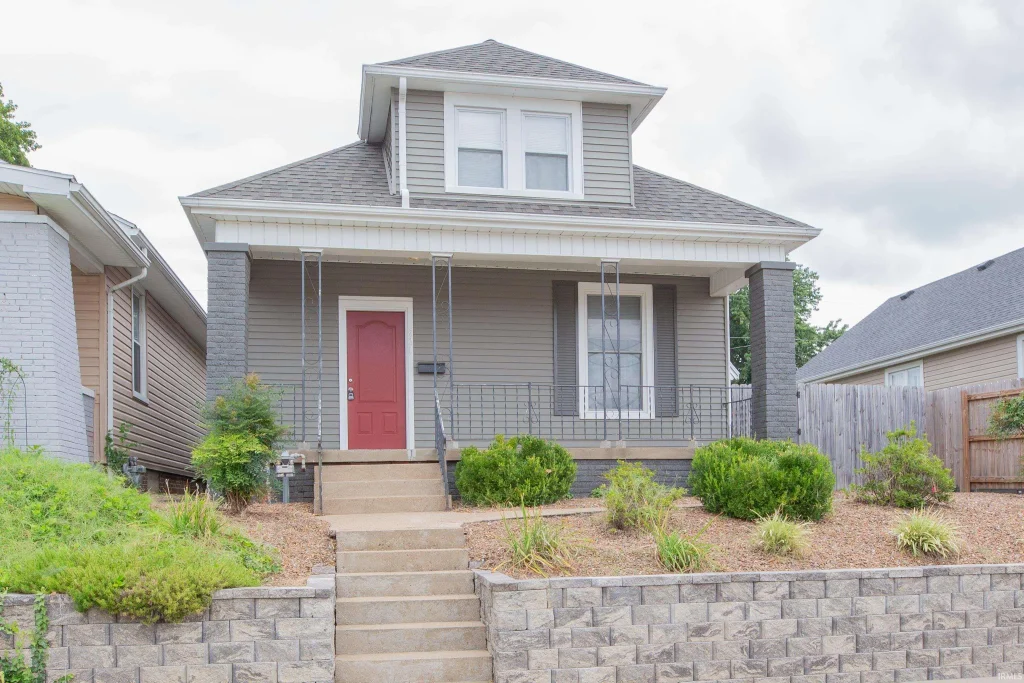 Welcome to the recently updated 2 bedroom 1 bath home on Evansville's north side. As you pull up to park you will appreciate the beautiful landscaping in the front of the house. Step onto the covered front porch and grab a seat. Rock those evening work stresses out watching gorgeous sunsets. Inside you will appreciate the open floor plan, the gorgeous new cabinetry and the LVP flooring. The home offers one bedroom on the main level and the full bathroom. Upstairs you have a large room at the top of the steps that would make a great secondary living space, home office or even a third bedroom. Through that room is the additional upstairs bedroom. The private backyard will give you plenty of room for the little ones and pets to roam and play. There is a detached 2.5 car garage with access from the alley.
