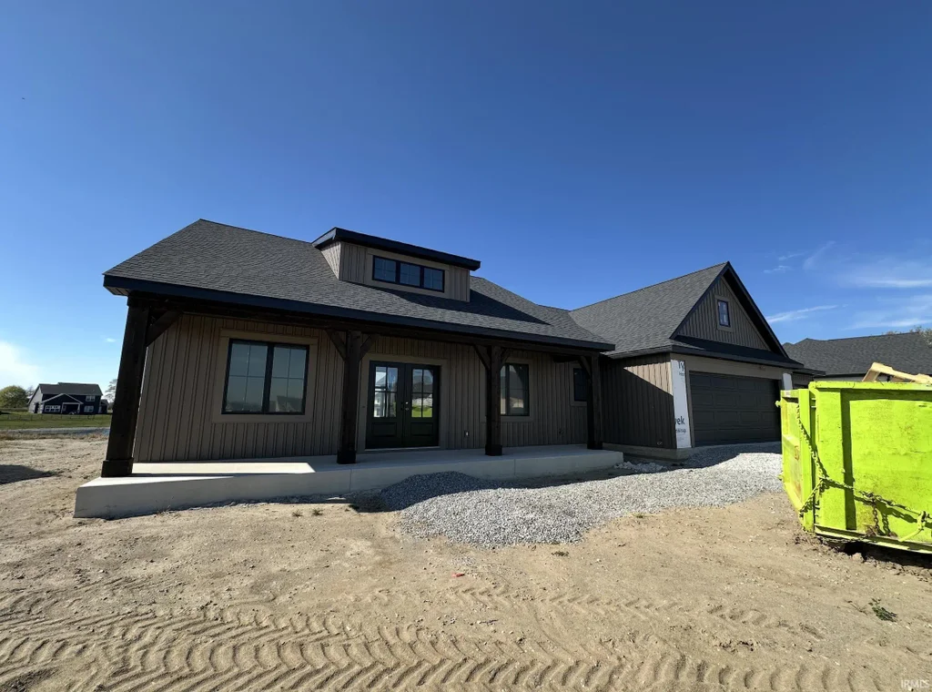 New Construction - Welcome to an exquisite custom-designed ranch by Bob Buescher Homes, set to be completed on December 19, 2025—just in time for the holidays! This meticulously crafted single-story residence boasts 2,237 sq. ft. of beautifully appointed living space, featuring 3 bedrooms, 2.5 baths, an office, and an expansive 3-car garage (816 sq. ft.). The exterior exudes classic charm, highlighted by an oversized front porch, elegant double entry doors, a striking dormer, and a rear covered porch with a soaring cathedral ceiling and extended patio—an idyllic setting for entertaining or unwinding. Step inside to discover an open-concept layout that radiates warmth and sophistication. The great room impresses with an 11’ ceiling height adorned with beams, a stunning fireplace framed by custom built-ins, and expansive windows that frame breathtaking water views and invite natural light inside. The adjoining kitchen and dining area are designed for both style and functionality, featuring custom maple cabinetry in a serene cream finish, an 8x5 hickory island with a rich coffee bean stain, and a spacious walk-in pantry complete with a built-in coffee bar. The kitchen perimeter and island are adorned with beautiful LG Clarino Brushed Quartz tops, making it a true centerpiece of the home. Retreat to the primary suite, a private haven featuring a cathedral ceiling and a spa-inspired bath equipped with a zero-entry custom tiled shower, dual quartz vanity, linen cabinet, and an oversized walk-in closet. A transom window above the vanity invites natural light, enhancing the serene ambiance. Bedrooms two and three, located on the opposite side of the home, are generously sized and share a beautifully appointed full bath. Additional highlights include a conveniently located laundry room adjacent to the primary suite, a stylish half bath with a custom built-in bench and hooks near the garage entry, and a spacious office/den just off the foyer, complete with a glass door for added elegance and privacy. The home is equipped with an irrigation system to maintain a lush landscape and a tankless water heater for energy efficiency. Plus, you'll have access to scenic walking trails nearby, perfect for outdoor enthusiasts. This home masterfully blends quality craftsmanship with contemporary design, offering unparalleled comfort, elegance, and functionality in every detail. Feel free to watch the progress pictures in the MLS as we bring this home to life!