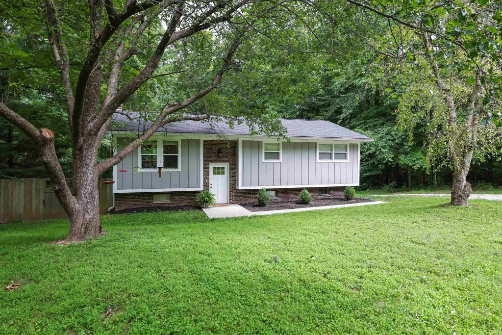 Welcome to this charming 3-bedroom, 2.5-bath home offering over 2,100 sq ft of finished living space in the desirable Danny Smith 2 subdivision. The main level features 1,080 sq ft, including a bright living room overlooking a tree-filled front yard where hummingbirds, woodpeckers, and cardinals are frequent visitors. The open-concept kitchen and dining area flows seamlessly to a back deck through sliding glass doors, perfect for entertaining or simply enjoying the peaceful view of your large, fully fenced backyard. Three bedrooms and 1.5 baths complete the upstairs living space. The lower level offers 1,022 finished sq ft with a walkout basement that is filled with natural light. The spacious family room centers around a beautiful Brown County stone fireplace, and with a walk in closet and full bathroom, gives the option to act as an additional bedroom. A second large room provides flexible space for a home gym, pet room, playroom, or office. A utility closet, laundry, and walkout to a concrete patio complete the basement living space. Outside, the backyard is a nature lover’s dream, bordered by woods and offering a private setting. It’s the perfect spot for dogs, gardening, bonfires, and gatherings with family and friends. A 23x30 detached garage provides ample space for vehicles, a workshop, or extra storage. This property is within walking distance of Sycamore Land Trust and public hiking trails, ideal for outdoor enthusiasts. Conveniently located just 15 minutes from Bloomington and one hour from Indianapolis International Airport, this home blends natural beauty with everyday convenience.