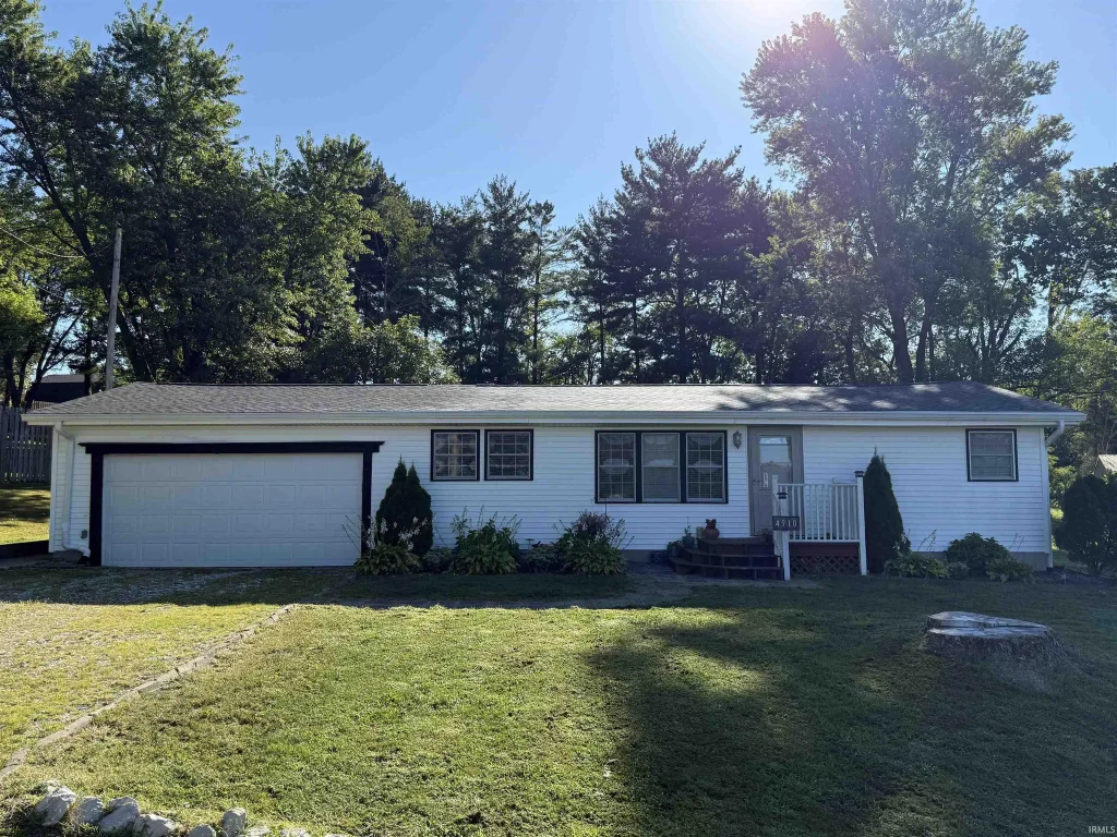 This charming 3-bedroom, 2-bathroom ranch home, built in 1965 and updated in 1990, offers 1,272 square feet of living space on a private half-acre lot. The home features a split floor plan with refinished red oak floors throughout. The modern, open kitchen features shaker cabinets, granite countertops, and a newer dishwasher. The primary bedroom includes dual closets and is adjacent to a freshly updated bathroom, while the guest bedrooms and second bathroom are situated on the opposite side for added privacy. Additional amenities include a newer dual-fuel Trane heat pump (installed in March 2020), a two-car attached garage with shelving for storage, and a spacious and private outdoor area perfect for entertaining, gardening, or enjoying the outdoors. The property also features a yard barn, chicken coop, and a fire pit for cozy gatherings. The roof and gutters were both replaced in 2024, ensuring peace of mind for new owners. As an added bonus, the liquid propane tank was recently filled and will be included in the sale. Conveniently located near shopping centers, IU Health, Indiana University, and Interstate 69, this home offers both comfort and practicality.