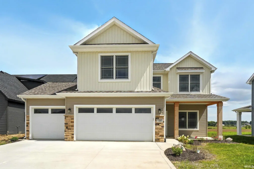 Step inside your move-in ready dream home in the highly anticipated Roosevelt Reserves—the first subdivision on Fort Wayne’s southeast side in over 50 years! Located at 7205 Starks Blvd, this brand-new build, completed in January 2025, offers 4 spacious bedrooms and 2.5 bathrooms, including a luxurious master suite with expansive closets. The thoughtful layout showcases an inviting entryway with a built-in bench, a 3-car garage, and premium finishes throughout. This home is completely move-in ready, featuring all brand-new appliances — including the washer and dryer. Enjoy quartz marble countertops, a luxury tiled electric fireplace, and elegant tray ceilings with accent lighting in select rooms. Stylish accent walls add a modern yet timeless touch, creating a space that feels elevated and welcoming. Best of all, this property is eligible for grant money that can be used toward your closing costs, making it even easier to make this house your home.