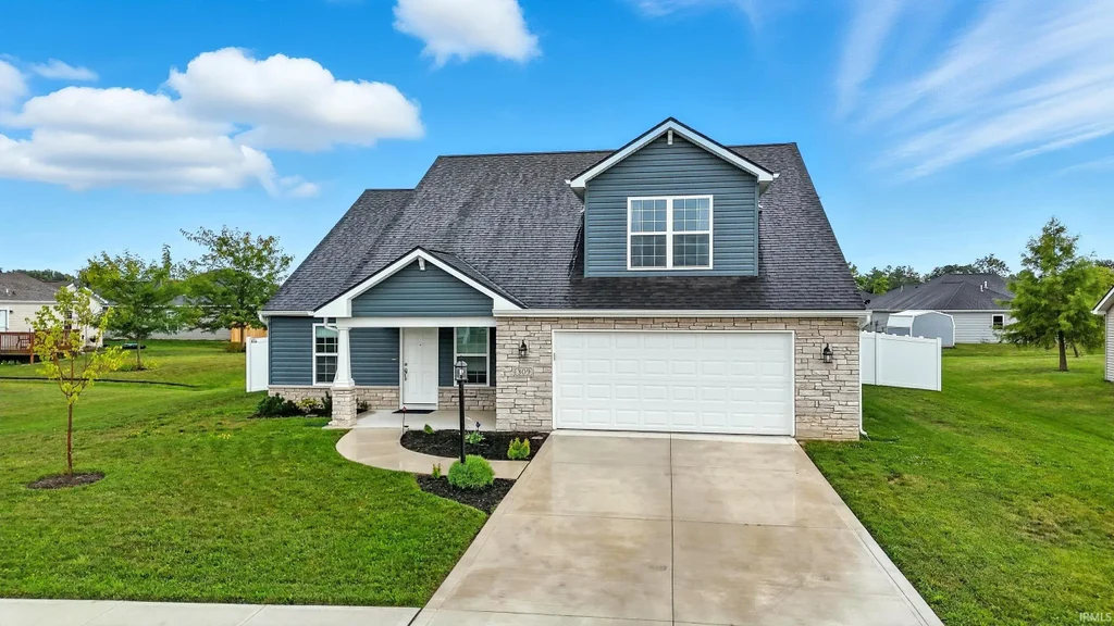 Step into this beautifully crafted 2,229 sq ft home by Kiracofe Homes, where modern style meets everyday comfort. A sunlit office (or 4th bedroom) greets you at the entry—perfect for guests, remote work, or hobbies. The heart of the home is the open-concept great room, highlighted by a striking tray ceiling and seamless flow into the chef-inspired kitchen, complete with stone countertops, a large eat-in island, and a walk-in pantry. The main-level primary suite offers a spacious walk-in closet and a spa-like bath with dual vanities and a walk-in shower. Upstairs, discover a cozy loft with a closet—ideal as a reading nook, play area, or extra storage—alongside two bedrooms with walk-in closets and a shared full bath. Enjoy peaceful mornings and relaxing evenings on the covered rear porch! Schedule a showing today!