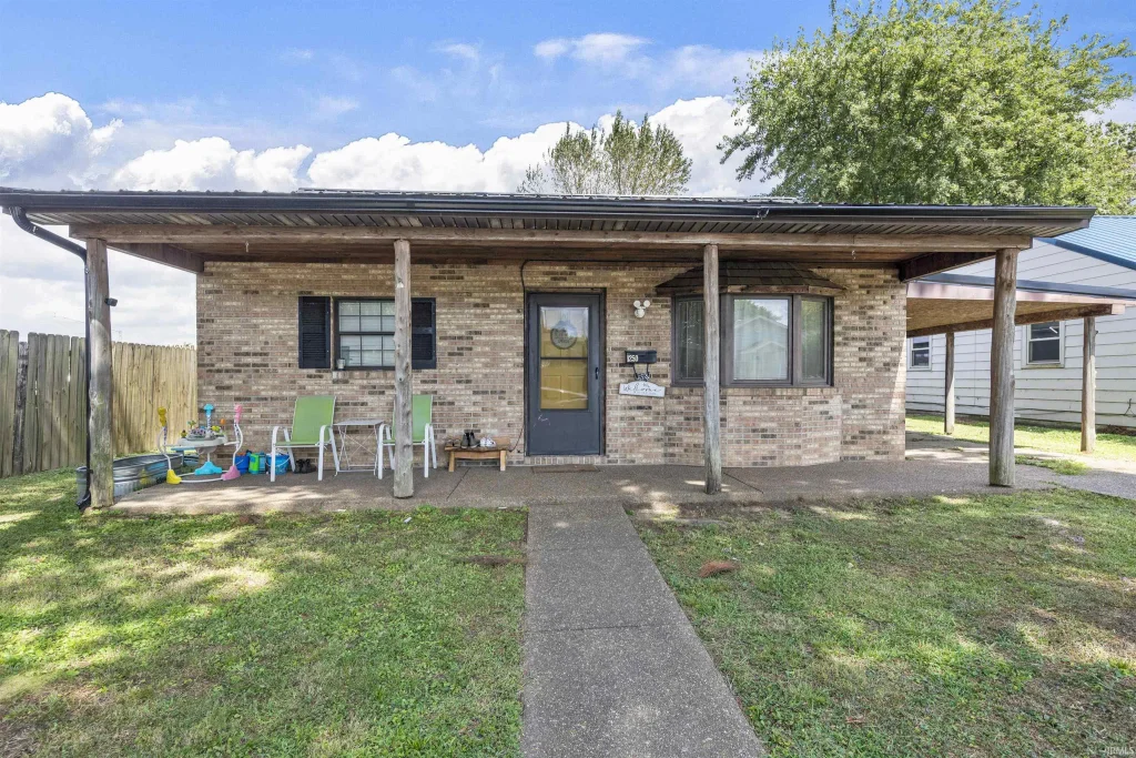 Welcome to this move-in ready 3 bedroom, 1 bathroom home with updates. The living room has vinyl flooring and a built-in cabinet. The updated kitchen has been updated and features ceramic tile floors, white cabinets, stainless steel appliances, and a breakfast bar. Just off the kitchen, you’ll find a separate laundry area for added convenience. Enjoy cozy evenings in the family room, complete with a fireplace and additional living space for relaxing or entertaining. The bathroom has been tastefully updated, and the entire home is finished in neutral tones for a bright, clean feel. Outside, you’ll love the covered front porch, a large fenced-in backyard, and a huge shed providing ample storage.