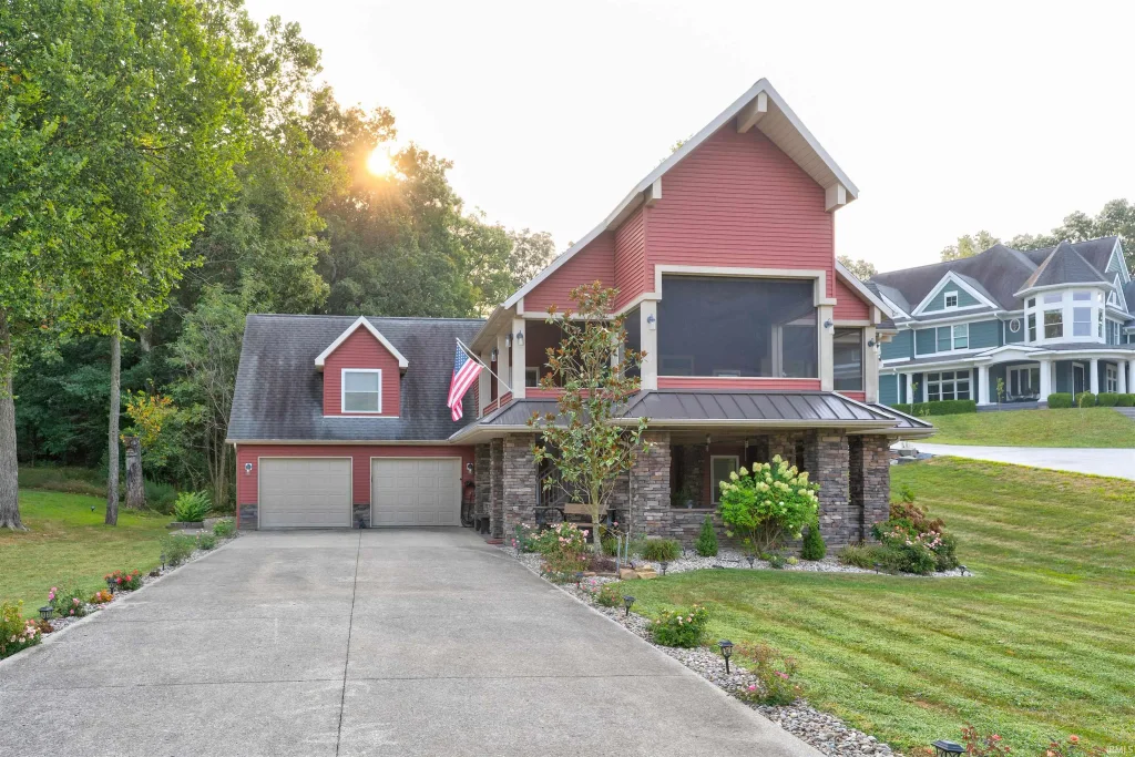 190 E Candy Cane Lane – Christmas Lake Village This home is a true lakeview dream with sweeping views of Christmas Lake, located just across from the boat docks—giving you the feel of lakefront living without the price tag. Step inside to find beautiful American cherry wood floors, an open floor plan, and a gas fireplace that adds warmth to the dining area. The kitchen is a chef’s delight, featuring quartz countertops, marble backsplash, a walk-in pantry, gas range, and six-panel wood doors throughout. Double doors lead you to a spacious screened-in porch with vaulted tongue-and-groove ceilings, the perfect place to enjoy morning coffee or evening sunsets. This home is as efficient as it is elegant, thanks to a solar panel system that helps reduce energy costs and supports sustainable living. The outdoor spaces are just as impressive with a huge deck, a covered patio with lighting, a backyard water feature, and storage under the deck. For those who love to garden, the property includes a greenhouse with running water and electricity. Offering 3 bedrooms and 3 bathrooms, this home also includes modern conveniences like an EV charger in the garage. Whether entertaining, relaxing, or simply soaking in the views, this home is built for both comfort and style.