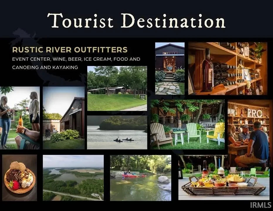Welcome to Rustic River Outfitters! We are pleased to present this unique opportunity to own a thriving business perched atop the bluffs of the Salamonie Reservoir. This property has been meticulously maintained after a complete and carefully considered renovation in 2016, making this a true "turn-key" investment. This property includes 2.32 acres, a beautifully restored sawmill that now serves as a limited restaurant, winery also serving craft beer and spirits, and event space. An outdoor pavilion and secondary bar lend seamlessly to outdoor events and gatherings. Don't forget to visit the ice cream shop and reserve your kayaks and canoes for a day spent on the water. This piece of Huntington County history exudes rustic character and timeless allure, providing a magical setting for unforgettable celebrations. The 3-way liquor license, inventory and décor to remain with the property. The kayak business will convey. Current owners are available to assist the new owners for a seamless transition.