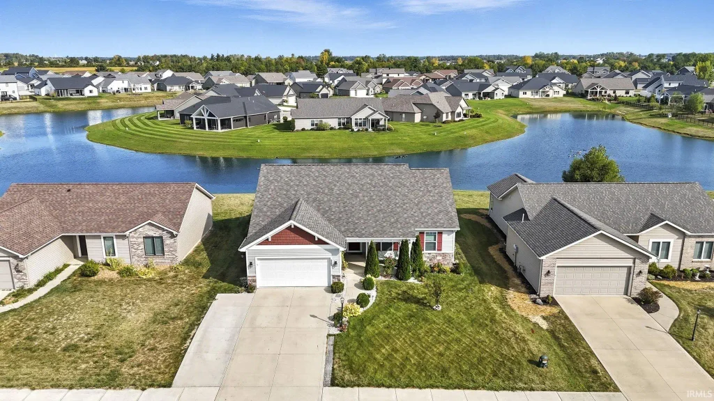 Beautiful 8-year-old ranch offering 3 bedrooms, 3 full baths, and over 2,570 sq. ft. of finished living space including a spacious finished basement. Enjoy peaceful pond views and an inviting covered front porch. The open-concept main level features a great room with a cathedral ceiling, a stylish kitchen with custom cabinets, island, and breakfast bar, plus three bedrooms and two full baths on the first floor. The finished basement adds a third full bath and plenty of flexible living space. Additional highlights include an extended concrete driveway for extra parking and a thoughtful layout perfect for everyday living and entertaining.