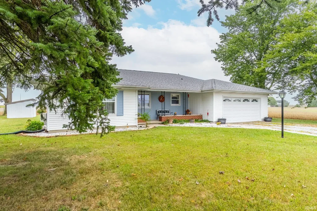 Looking for affordable country living? This 1560 sq ft ranch sits surrounded by scenic fields on a half acre with NO HOA!!! Great location with easy access to I-469, convenient to New Haven and Ft Wayne amenities. Large 20x15 living room, eat-in kitchen plus three bedrooms, 2 full bathrooms plus utility/laundry room, 2 car attached garage. Refrigerator (2025), wall oven and elec cooktop (2020) remain, as do washer and dryer and water softener. Owner recently installed a wall mounted heat pump/AC in the living room to help keep the house comfortable and efficiently heated/cooled. Clean and neat, this home is ready to move into!!!