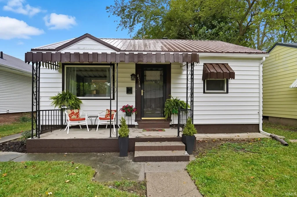 Fully Updated Home with Modern Comforts! Step into this beautifully renovated 2-bedroom home featuring new finishes throughout such as vinyl flooring, plush carpeted bedrooms, and fresh paint inside and out. The kitchen has been completely updated with new cabinets, new appliances including a dishwasher and garbage disposal. Kitchen even features a pantry! The bathroom has had a total remodel complete with slick features and a contemporary design. There is a full unfinished basement that has been dry painted and provides plenty of storage room. 1.5 car detached garage has been fully drywalled. Home also features an adorable front covered porch as well as a spacious back patio. Additional updates are 90+ furnace with a/c, LED lighting throughout, ceiling fans, new water heater, and a durable metal roof.