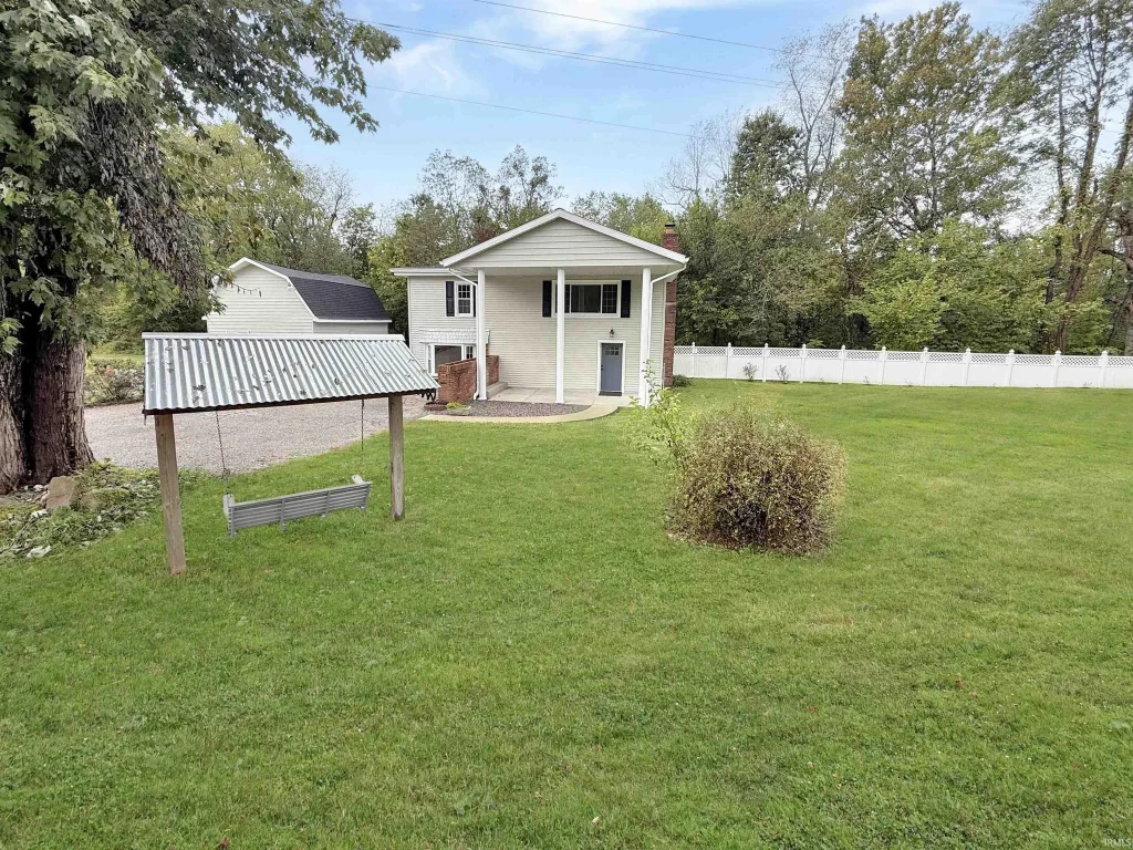 Stately home with striking curb appeal featuring towering columns and a grand covered entrance. Neutral siding paired with elegant brick detailing adds charm, while a spacious, well-maintained lawn complete the picture. Nicely updated throughout with new flooring, appliances, washer & dryer, stairs, updated bathrooms, and so much more! Main level includes an eat-in kitchen, full bath and a spacious living room. Upper levels include three bedrooms, full bath, and a second living space. The finished barn has so many possibilities, with a finished living space, kitchen, a full bath, and walk up attic for extra storage. On almost an acre, this home has so much to offer! Currently no exemptions are in place, but once they are filed taxes will go down. See attached updates for a complete list. Portion of the property is in a flood zone. Cameras are excluded (exterior)