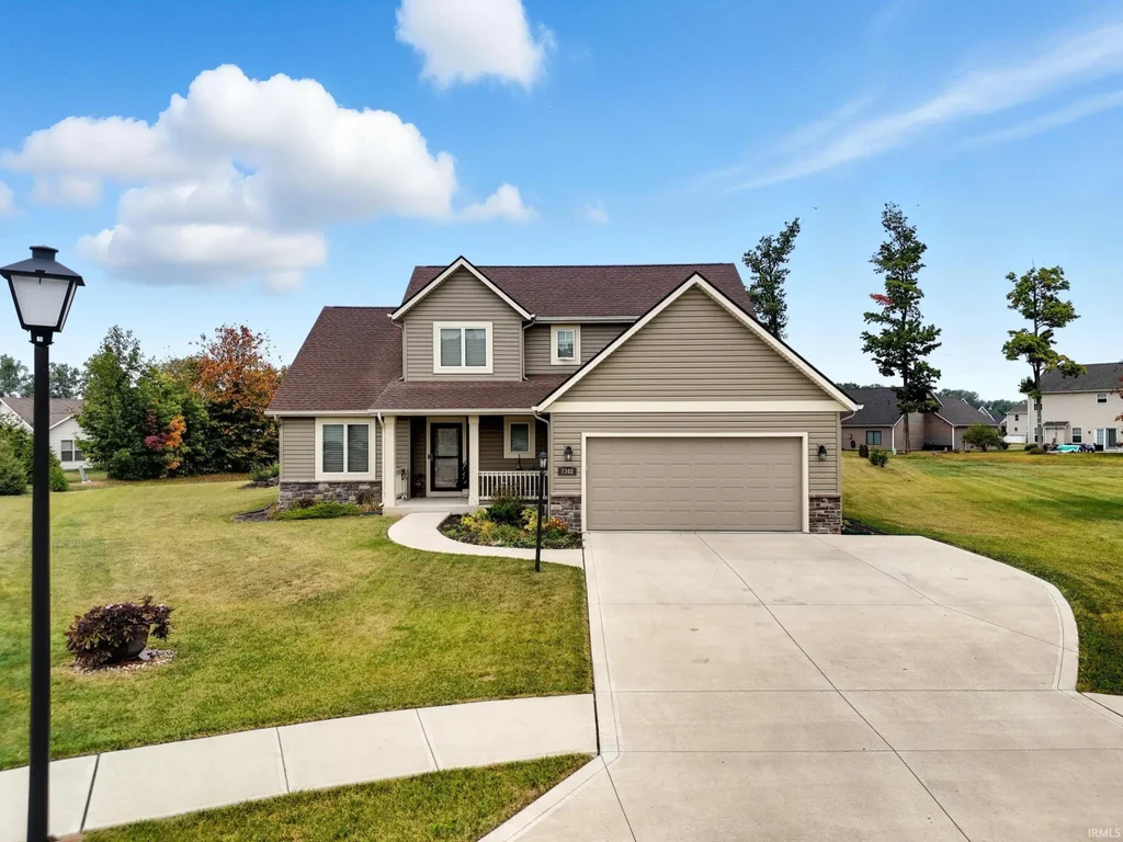 Built just 4 years ago by Granite Ridge, this 4-bedroom, 3.5-bath two-story home is tucked at the end of a quiet cul-de-sac on the neighborhood’s largest lot—a full half acre of space to enjoy. Step inside to an open, flowing layout designed for both everyday comfort and effortless entertaining. The main level hosts a spacious primary en-suite, a bright flex-space/den, and the convenience of main floor laundry. The finished basement expands your living options with a full bedroom and bath, a 12' wet bar, and a wide-open recreation area ideal for movie nights, gatherings, or creating a private guest suite. Outside, the massive backyard is a rare find—perfectly suited for a pool, playset, garden, or weekend games under the sun. A cozy gas fireplace inside, plus a covered front porch perfect for coffee mornings or evening unwinds, round out this thoughtfully designed home that blends style, function, and fun in one of the area’s most desirable communities.