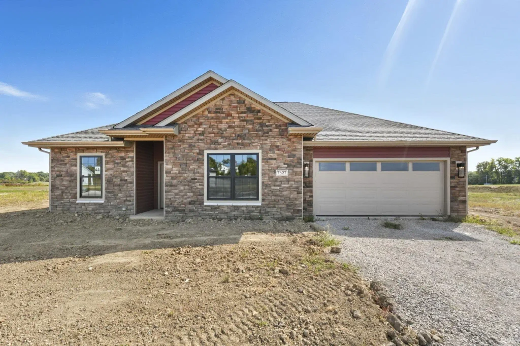 Looking for a ranch near the countryside of Southeast Fort Wayne? Welcome home! This thoughtfully designed property offers 3 spacious bedrooms and 2 full bathrooms across 1,575 square feet, starting with a welcoming foyer entry. The stone and red vinyl exterior bring unique character and add to the curb appeal along Starks Blvd. With its intentional elevation, the home’s façade has both height and depth, giving this ranch an impressive presence. Inside, the living area features a custom accent wall that flows seamlessly into the kitchen and eat-in dining space. Closet Concepts systems are installed throughout for organized storage. The home comes fully stocked with appliances, and the bathrooms showcase luxury tiled showers. Move-in ready and designed with both style and comfort in mind, this home is ready for its new owner.