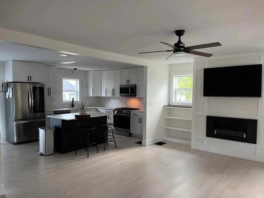 Stunning updated home with 3 bedrooms and 2.5 bathrooms. Numerous updates, including new appliances, flooring, lighting, bookshelves, a fireplace, a metal roof, water heater, siding, and doors. Large kitchen with an island and quartz countertops. Large porch with tongue and groove ceiling and plenty of room to relax. The pictures don't do it justice; you need to see it to appreciate it. Book a showing today before it is gone! Bedrooms 13x10, 13x10, 13 x 8.