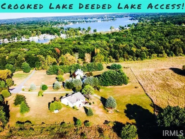DEEDED LAKE ACCESS to sought after Crooked Lake! Enjoy this summer owning this amazing home situated on a 6.45 Acre Estate! This home features a gorgeous great room offering awesome views, a cathedral ceiling, built-ins, and a cozy fireplace. The walk-out basement is complete with a wet bar, theater room, and full bath, and your very own workshop or 3rd car garage storage. You will have plenty of room for friends and family with 5 bedrooms and 3 full baths and wonderful outdoor entertaining space! Many recent updates include a beautiful kitchen with all newer appliances, an all-new Primary Bathroom with a walk-in shower and built-in Bluetooth speaker, abundant built-in storage in the Primary Bedroom and throughout, updated flooring and freshly repainted in most every room, and more! An additional bonus is that a portion of the land can be farmed for additional income! 3rd car garage is off walkout basement and measures 32 x 12. All information on this data sheet is deemed reliable but is not guaranteed.