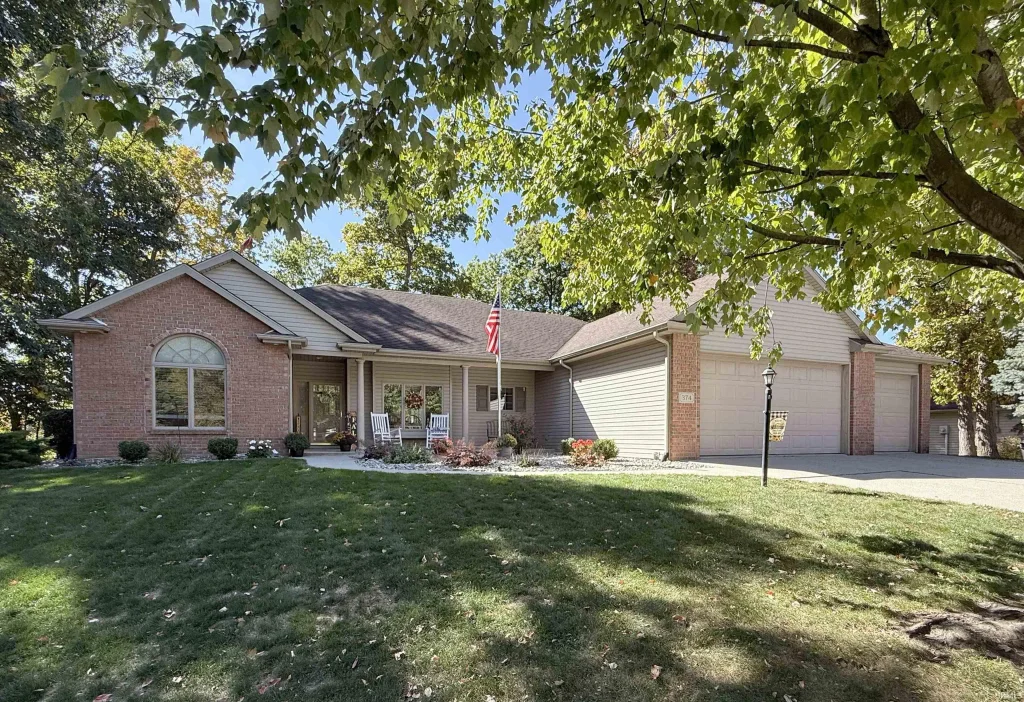 Spectacular and spacious quality built 3 bedroom 2 bath ranch with 3-car attached garage in Eagle Glen. This beautifully maintained home, both inside and outside, provides an inviting open floor plan with 9 foot ceilings and lots of upgrades including the 3 year old high efficiency natural gas forced air furnace and central air, updated landscaping in 2025 and flooring in primary bathroom. The very large great room is equipped with a gas fireplace and the relaxing 4 season room provides for a second living zone. The finished 3 car garage provides that extra space for the toys or potential space for a workshop. The extra large 1 1/2 lot wooded setting provides the space outside that is hard to find.