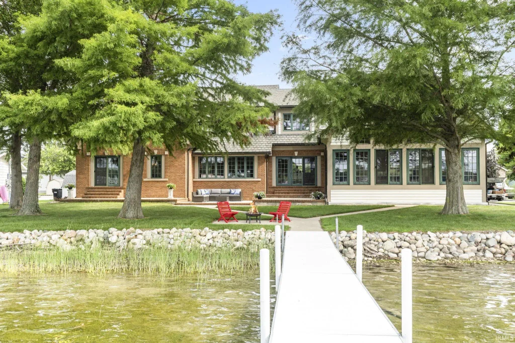Set on 100 feet of private frontage in the sought-after Feicks Point neighborhood, this custom lakefront home offers rare quality, space, and comfort in one of Lake James’ most desirable settings. With water views on both sides and a design built for connection, this is a home that brings people together across generations, seasons, and milestones. Inside, there are 5 bedrooms, 4 full baths, and 2 half baths thoughtfully arranged to support both everyday living and extended stays. From the custom cherry and maple woodwork to the high-end kitchen featuring granite countertops and a Sub-Zero refrigerator, every detail reflects craftsmanship built to last. Natural light fills the home’s gathering spaces, including a spacious sunroom with floor-to-ceiling windows, ideal for morning coffee, afternoon reading, or evening games after a day on the water. The open layout connects the kitchen and living areas, making it easy to host holidays, weekends with friends, or quiet evenings at home. Additional features include a game room with wet bar, a cozy library, flexible loft space, and a dedicated office, plus a separate guest suite with private entrance and kitchenette, perfect for extended family or visiting guests. Outside, enjoy a flat, shaded lakeside yard perfect for lawn games or summer dinners. The dock is ready for boating, swimming, and lakefront living at its best. Lake James is one of Indiana’s premier all-sports lakes, known for its clear water, connected basins, and year-round recreation. Feicks Point offers a unique blend of privacy, prestige, and community close to Angola’s conveniences and just minutes from Pokagon State Park. It’s a place where neighbors become friends, traditions are built, and ownership often spans generations.