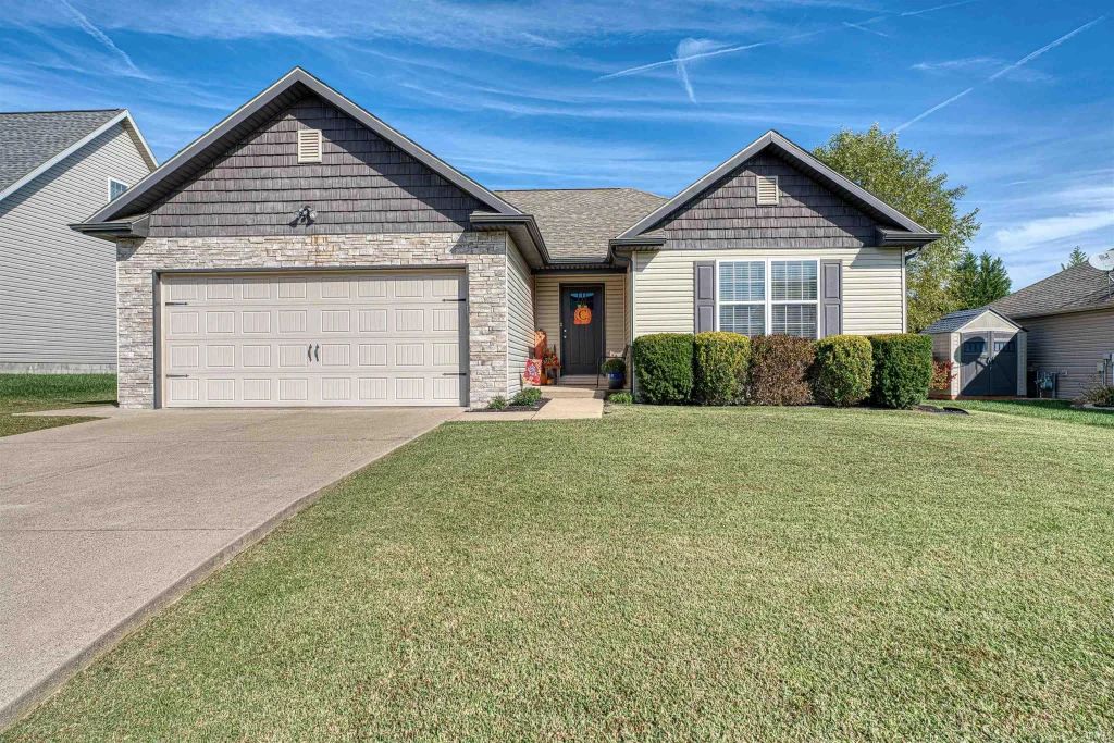 Welcome to this charming and contemporary 1,431 square foot home, nestled conveniently on a peaceful cul-de-sac! This delightful single-story residence, just 10 years young, boasts a striking combination of brick and vinyl exterior, ensuring both durability and curb appeal. With a meticulously maintained lawn, the exterior invites you in with its pristine presentation. Step inside to discover the elegance of engineered hardwood floors that flow seamlessly throughout the open-concept design. The heart of the home features a spacious kitchen, dining, and living room area, perfect for entertaining or enjoying quiet nights in. The kitchen is fully equipped with all stainless-steel appliances, adding a touch of modern elegance and functionality to your culinary adventures. Plus, the included washer and dryer offer added convenience for your laundry needs. The split bedroom layout offers privacy and convenience, with three generously sized bedrooms and two full baths, ideal for families or guests. The home is complete with a two-car garage, providing ample space for vehicles or additional storage needs.