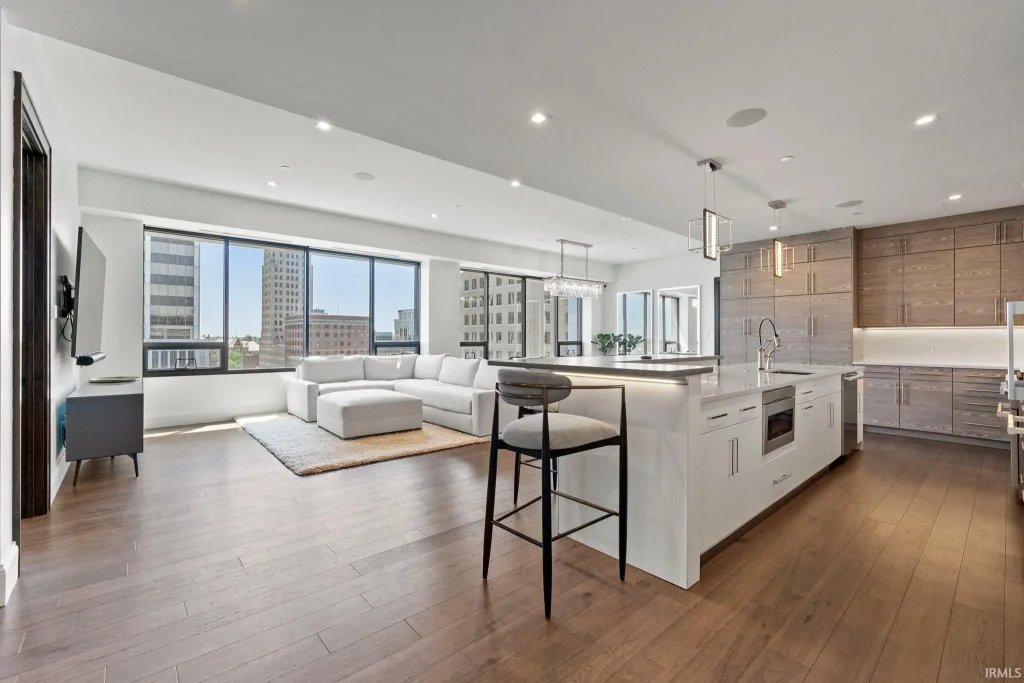 Start Showing Date: 11/5/2025 Listed coming soon. Showings may begin on November 5th.Elevate your lifestyle in this exquisite 7th-floor condo in the heart of downtown Fort Wayne. Featuring 2 bedrooms and 2.5 baths, this home combines modern elegance with city living. The open-concept layout boasts high ceilings, a wet bar, and ample cabinetry complimented by upgraded Miele appliances. Every room offers sweeping city views with remote-controlled shades for comfort and convenience. The keyed secured elevator will take you to the condo, roof top terrace, and the private gym. There is a community entertaining area perfect for hosting gatherings with friends and family. Sophisticated finishes, stunning views, and prime downtown location make this condo a rare opportunity for refined urban living.